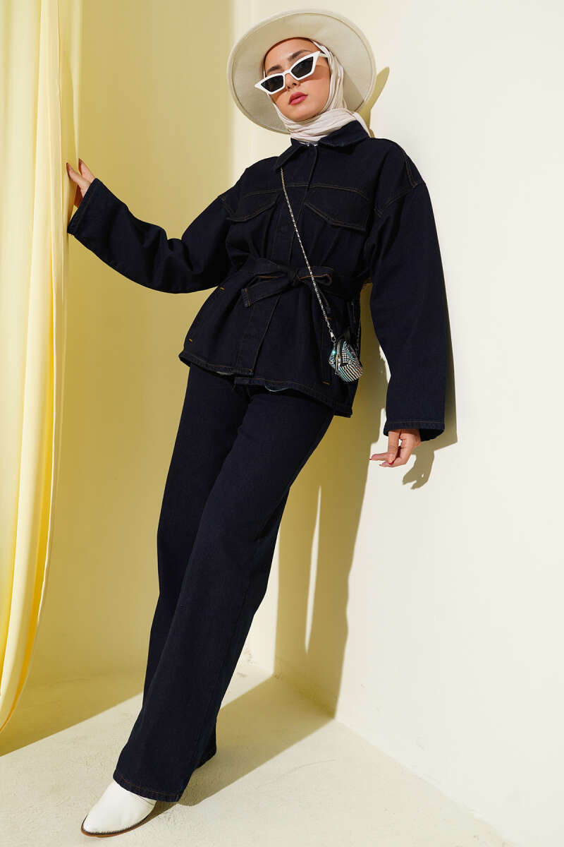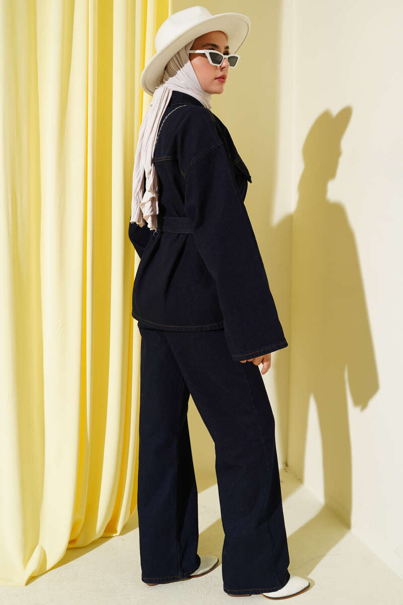 Çapraz Taş Süslemeli İkili Takım Lacivert