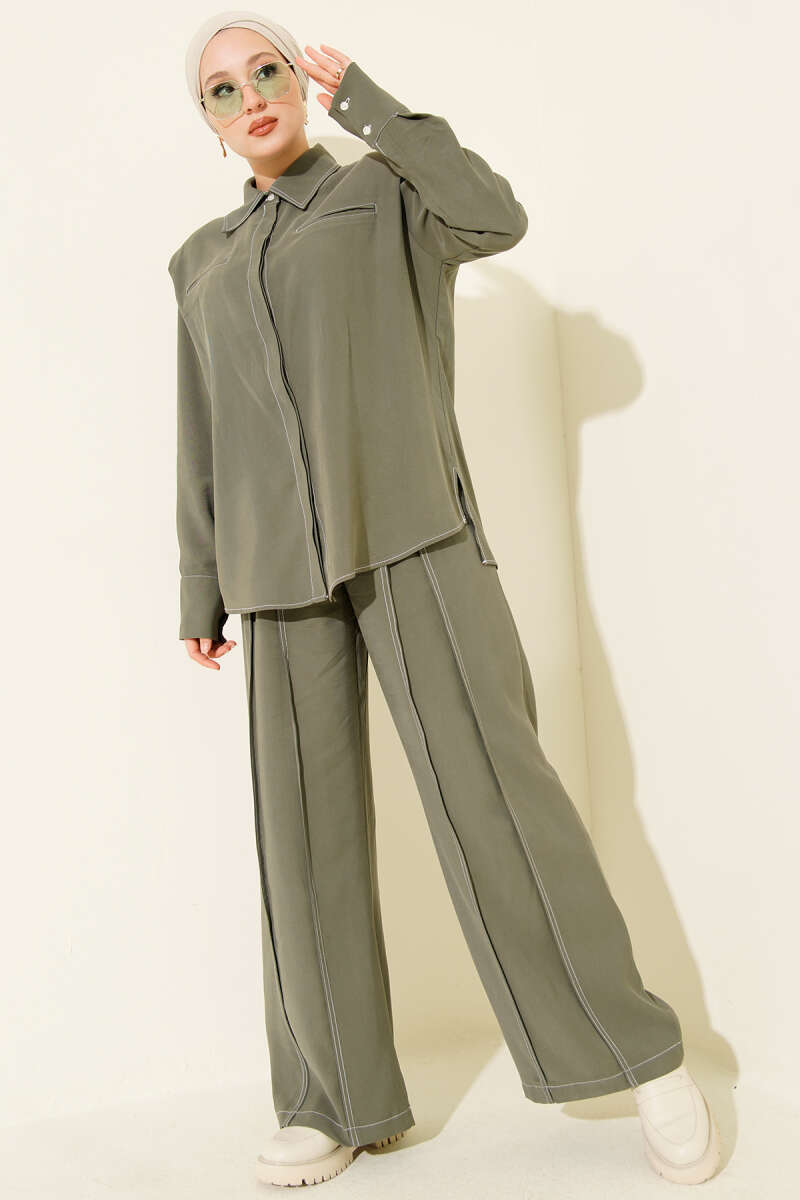 Metal Düğmeli Kemerli İkili Takım Pembe