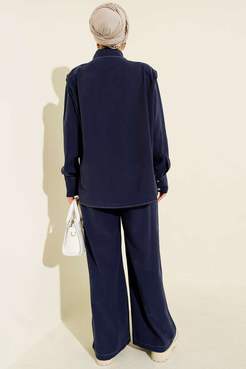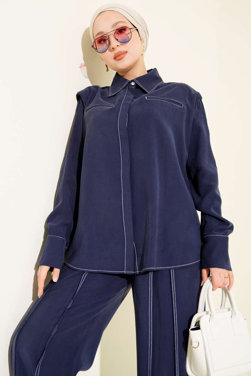 Çizgili Gömlek Garnili İkili Takım Siyah