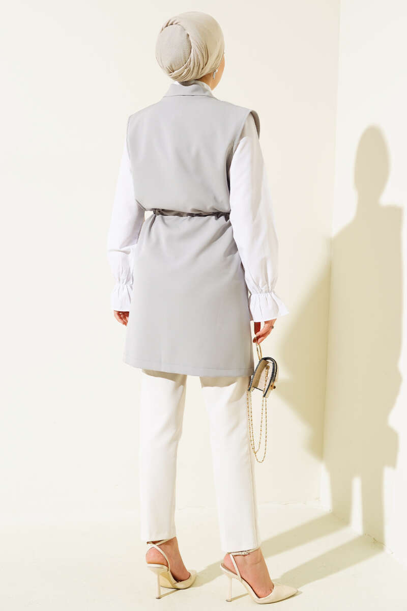 Göğüs Cep Kapaklı Garnili İkili Takım Gri