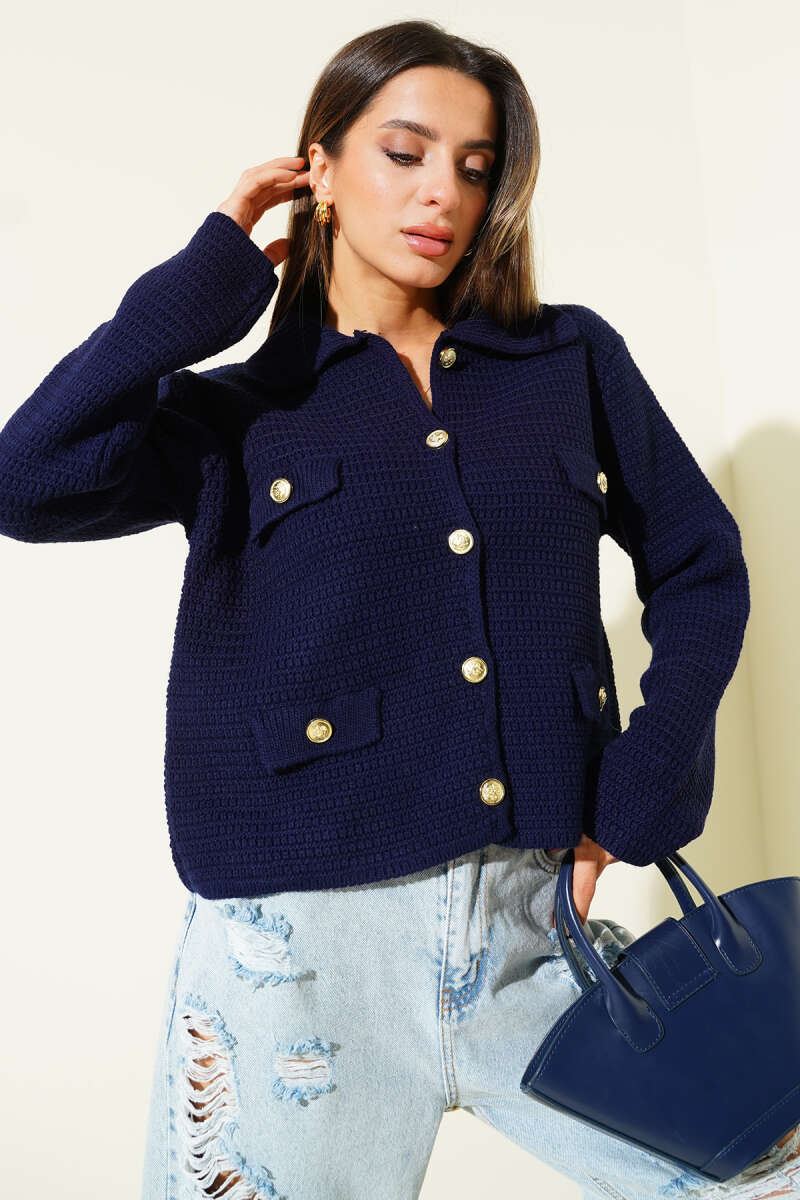Fermuarlı Geniş Örgülü Hırka Lacivert