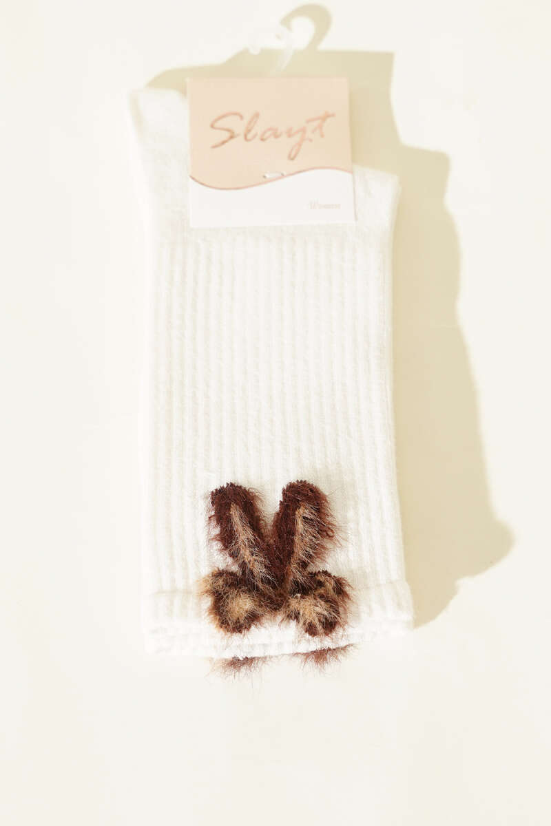 Sakal Detaylı Kadın Soket Çorap Ekru