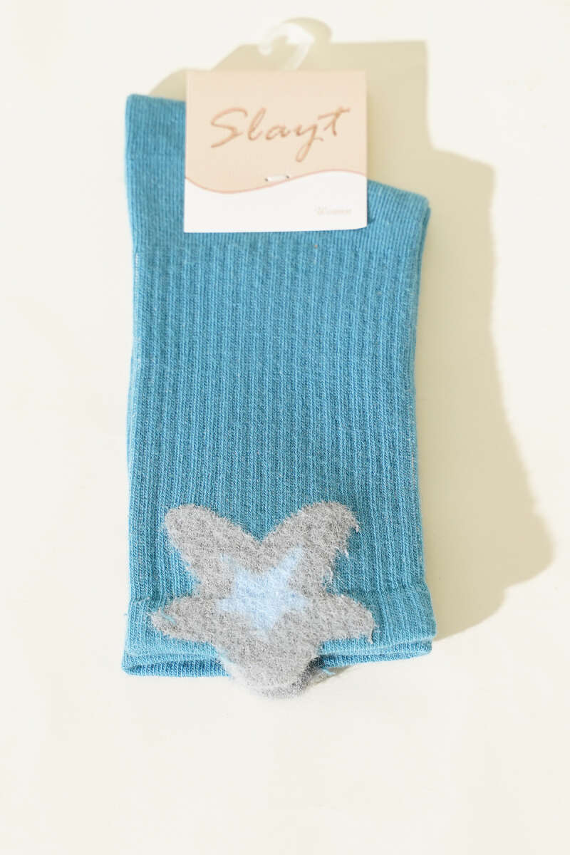 Sakal Detaylı Kadın Soket Çorap Mavi