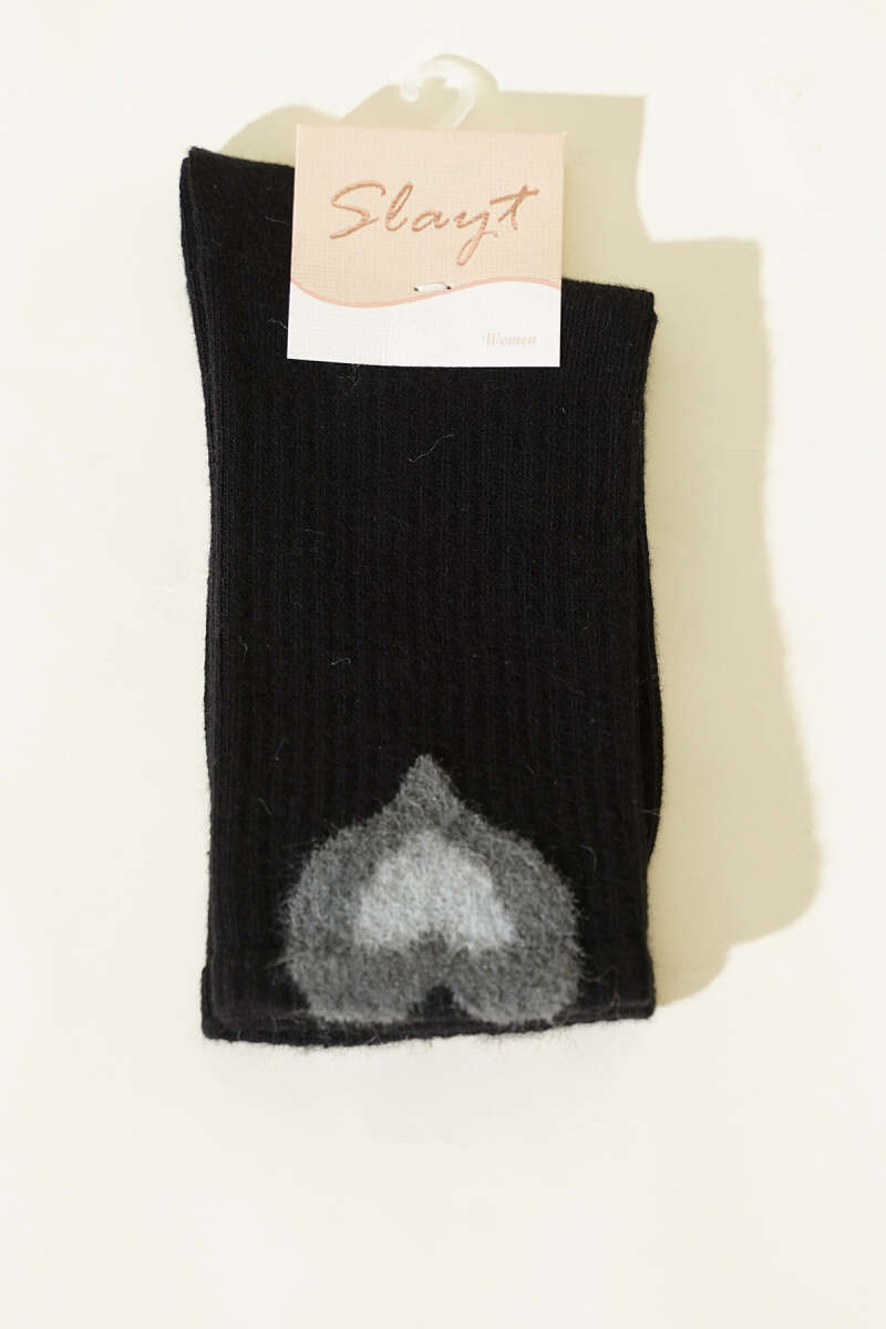 Sakal Detaylı Kadın Soket Çorap Siyah