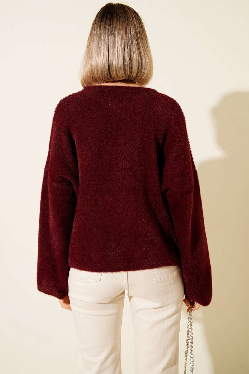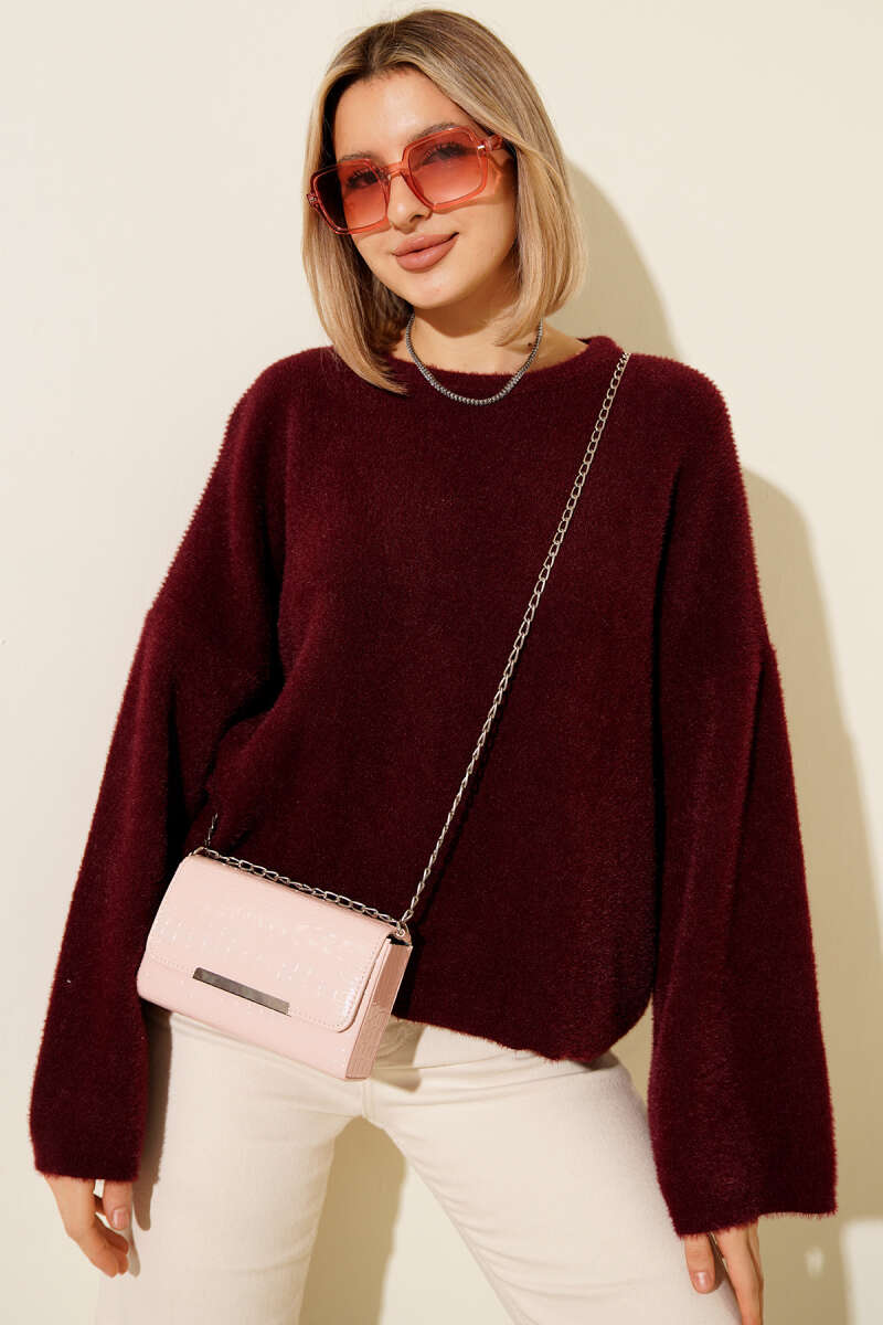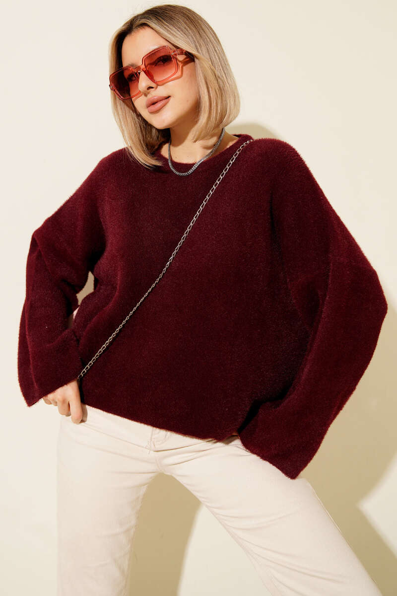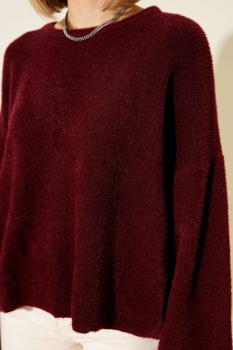 Bisiklet Yaka Uzun Triko Elbise Bordo