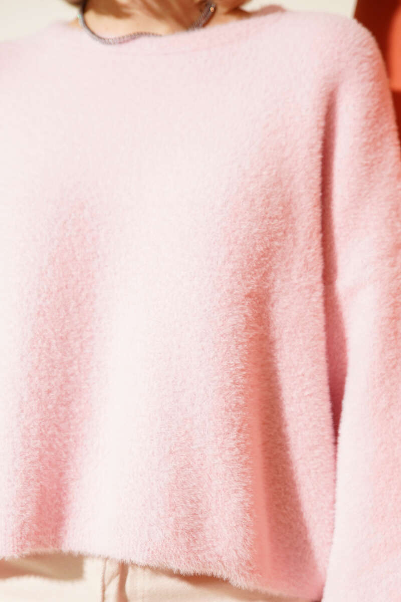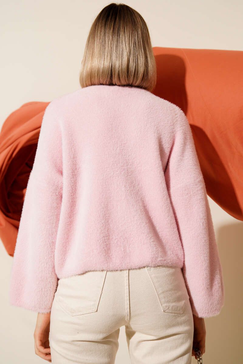 Fermuarlı Geniş Örgülü Hırka Pembe