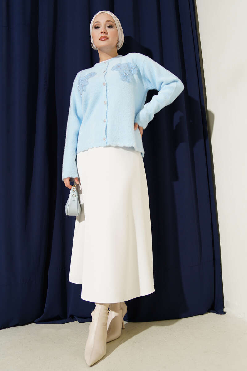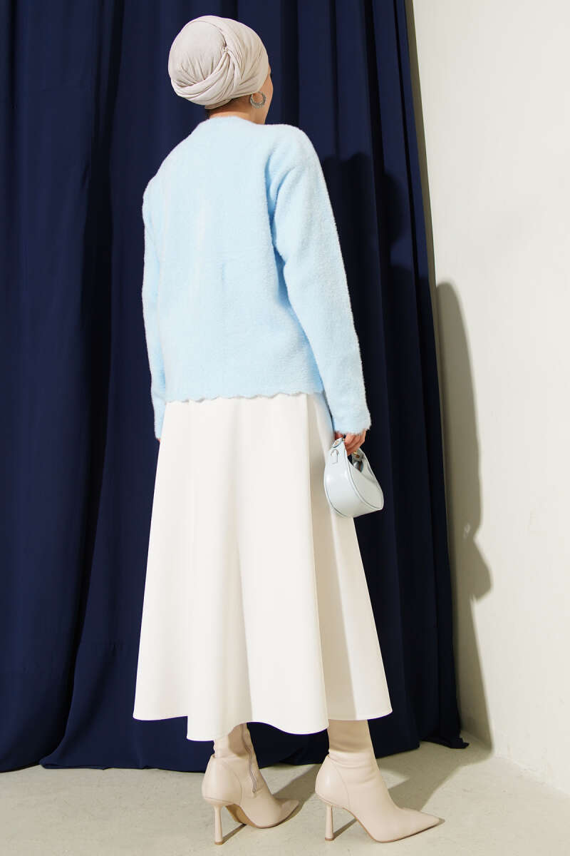 Düğmeli Pile Detaylı Triko Hırka Krem