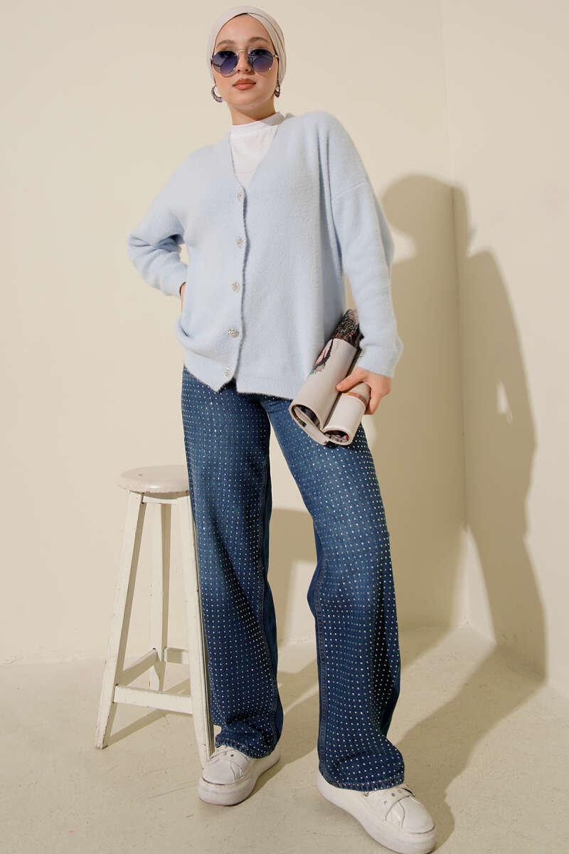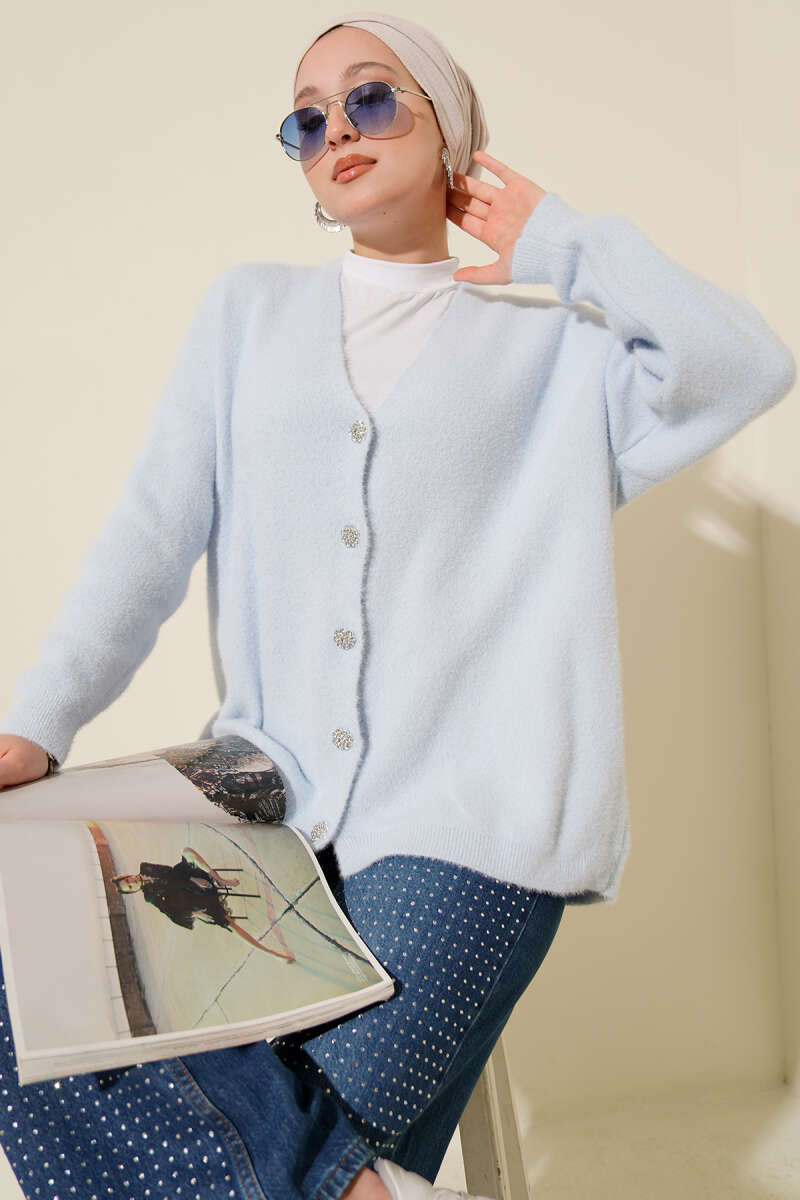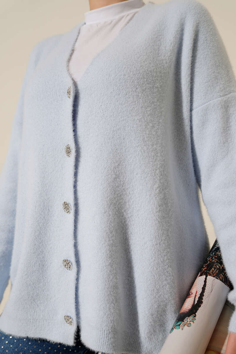 Gold Düğmeli Basic Sakallı Triko Hırka Kahve