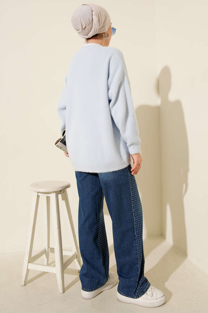 Kabartmalı Cepli Uzun Triko Hırka İndigo