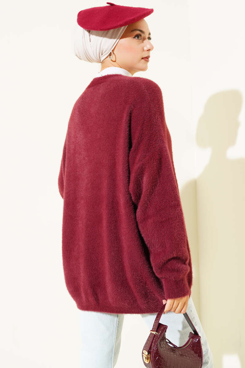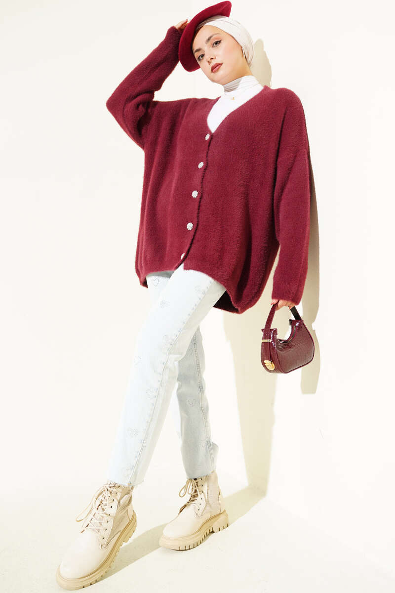 Sakallı Düğmeli Hırka Bordo