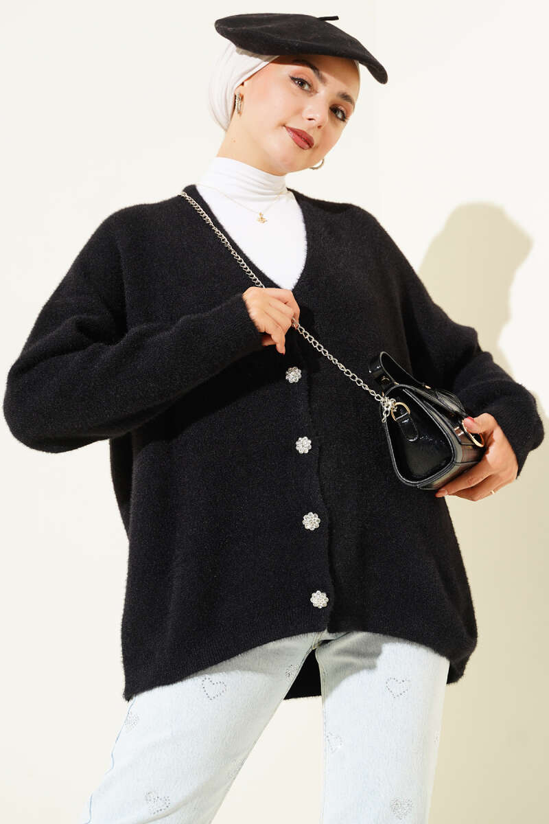 Sakallı Düğmeli Hırka Beyaz
