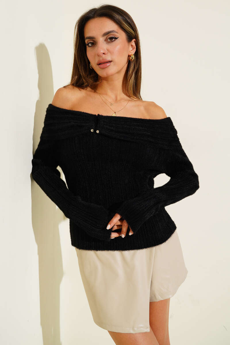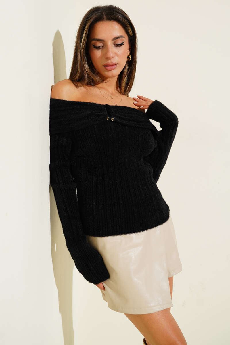 Sakallı Madonna Yaka Kazak Siyah