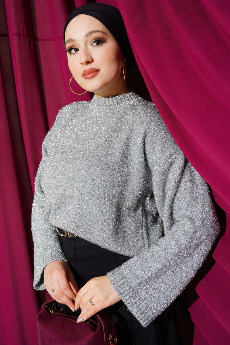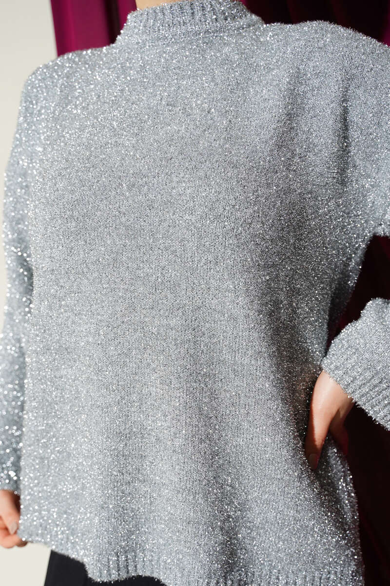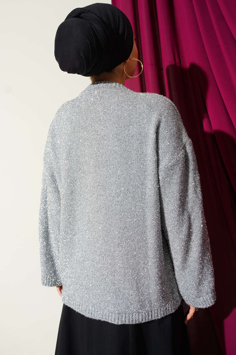 Sakallı Simli Triko Kazak Ekru