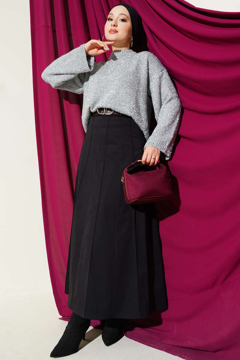 Kırışık Pileli Etek Siyah