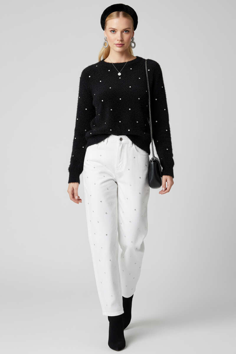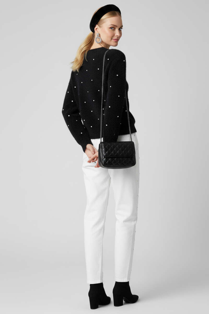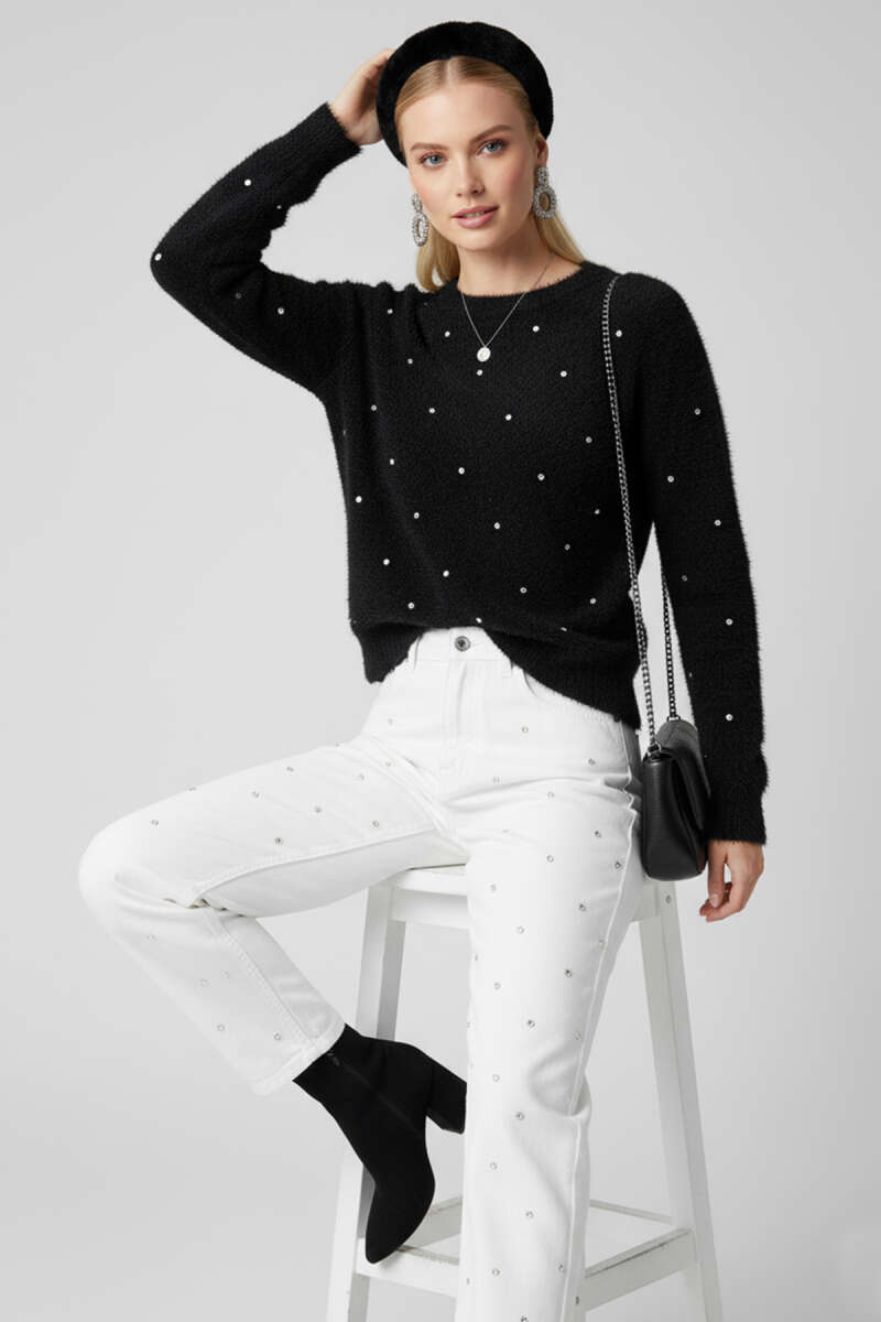 Fitilli Gold Broş Detaylı Triko İkili Takım Nefti