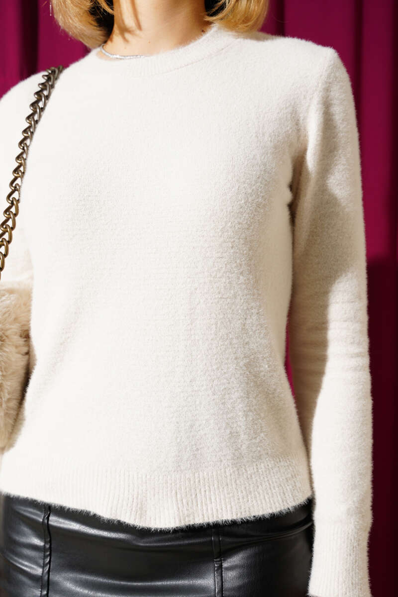 Alt Dikişli Yumoş Triko Tunik Ekru