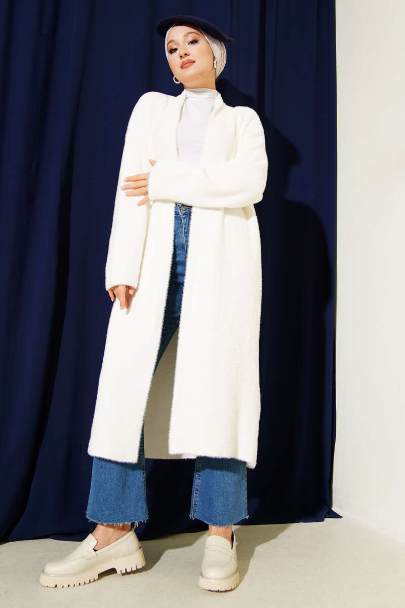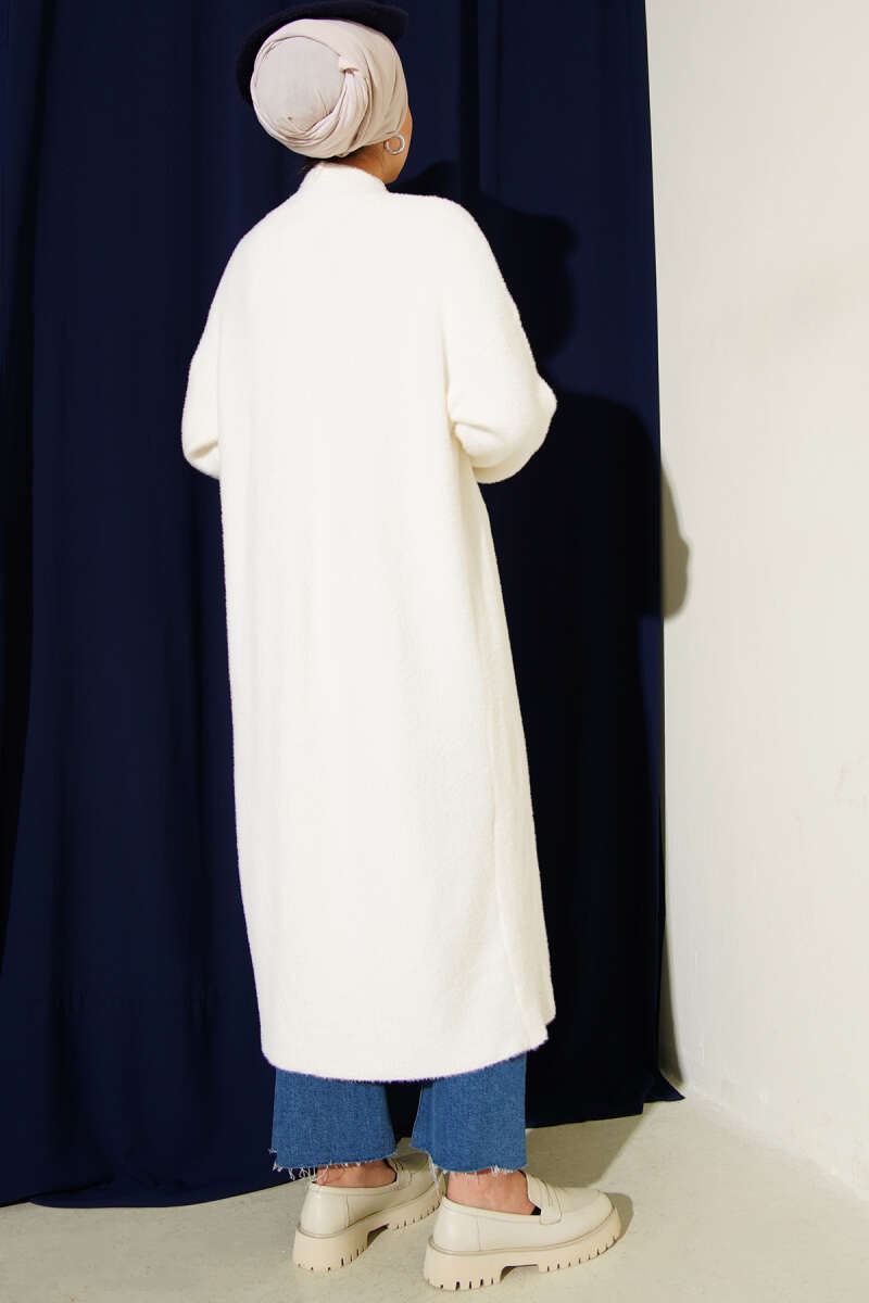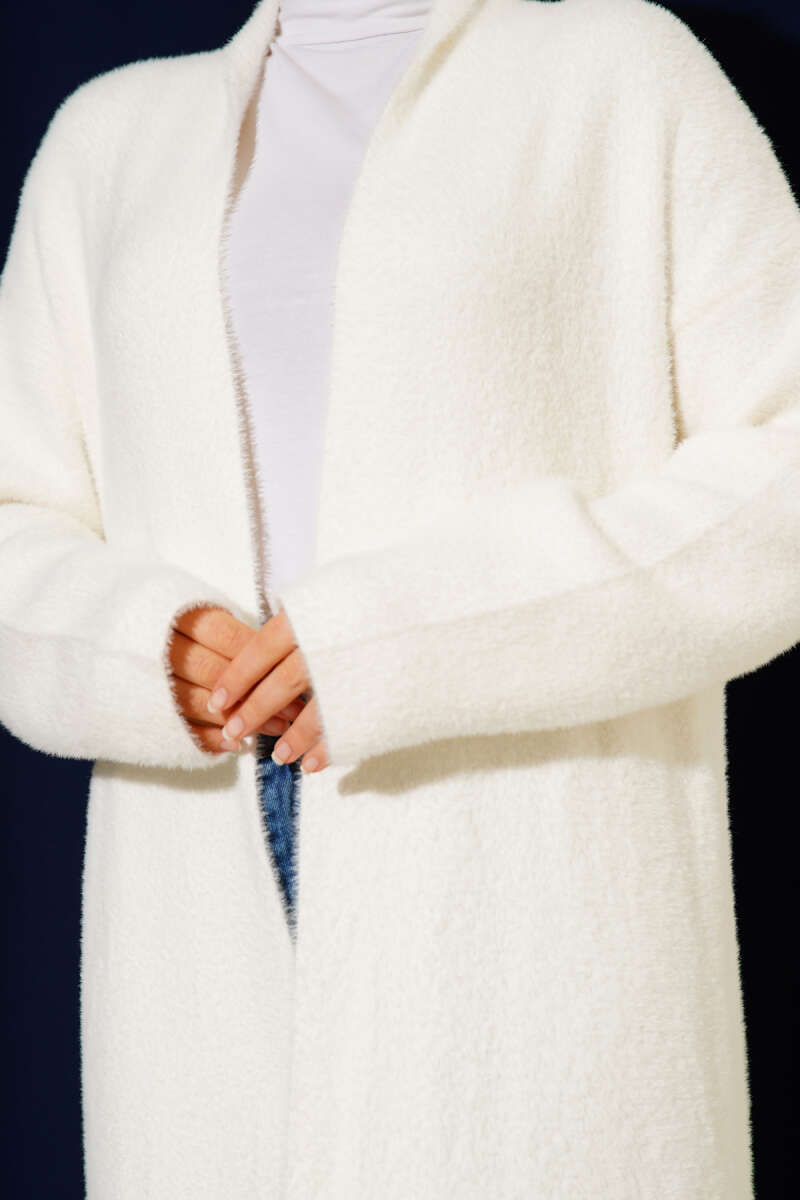 Kapüşonlu Fermuarlı Cepli Hırka Latte