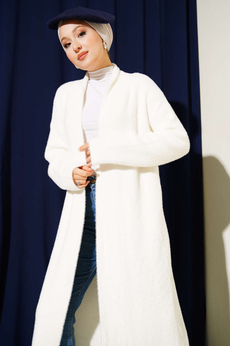 Kapüşonlu Fermuarlı Cepli Hırka Bej