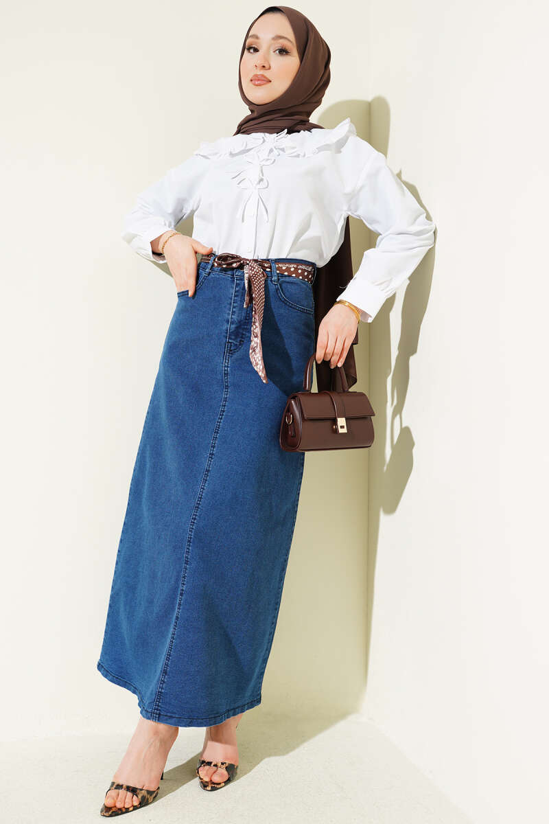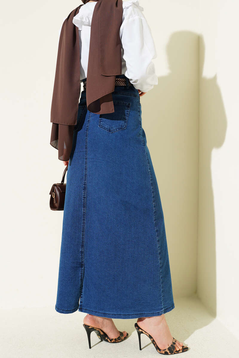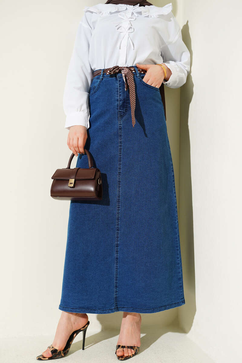 Şal Detaylı Kot Etek Kot Mavisi
