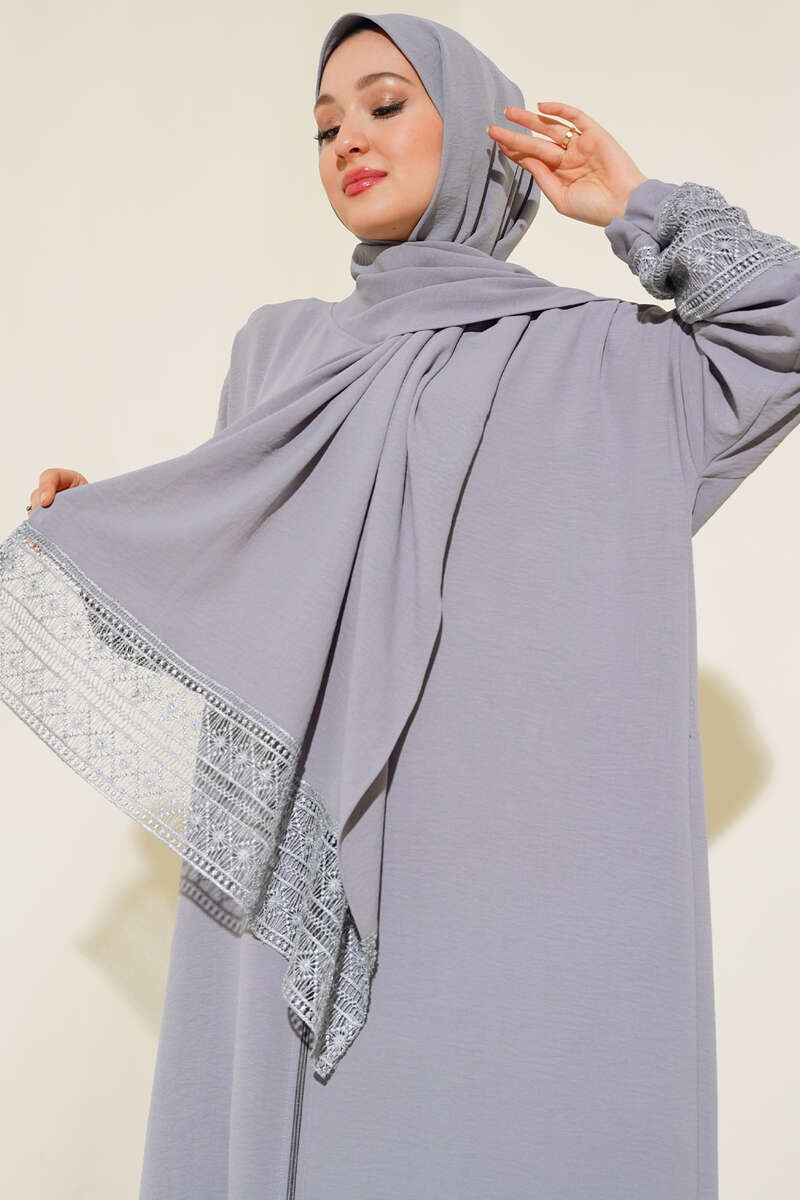 Yeni sezon ferace modelimiz sizlerle beraber. Şal görünümlü feracemiz geniş modelidir. Kolları dantellidir. Boydan fermuarlıdır. Şal ucu dantelli olan ferace modelimizin renk seçenekleri mevcuttur.