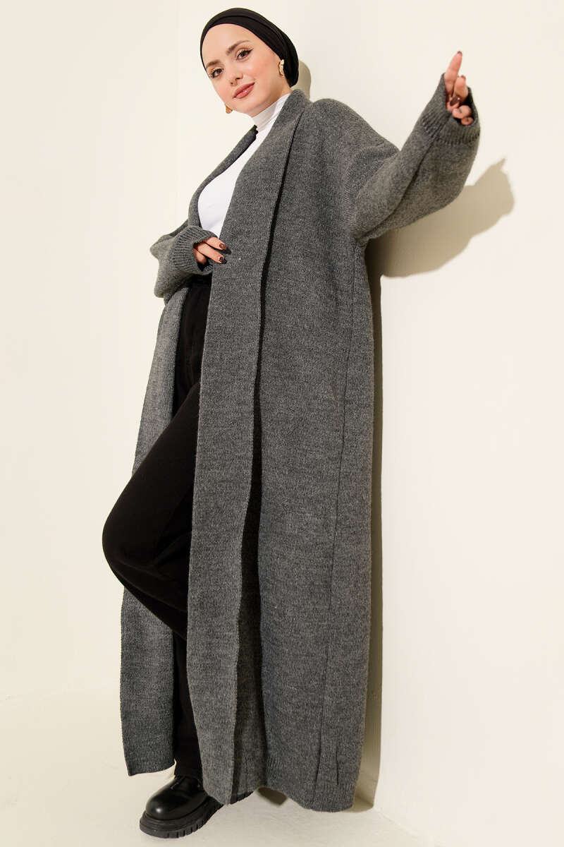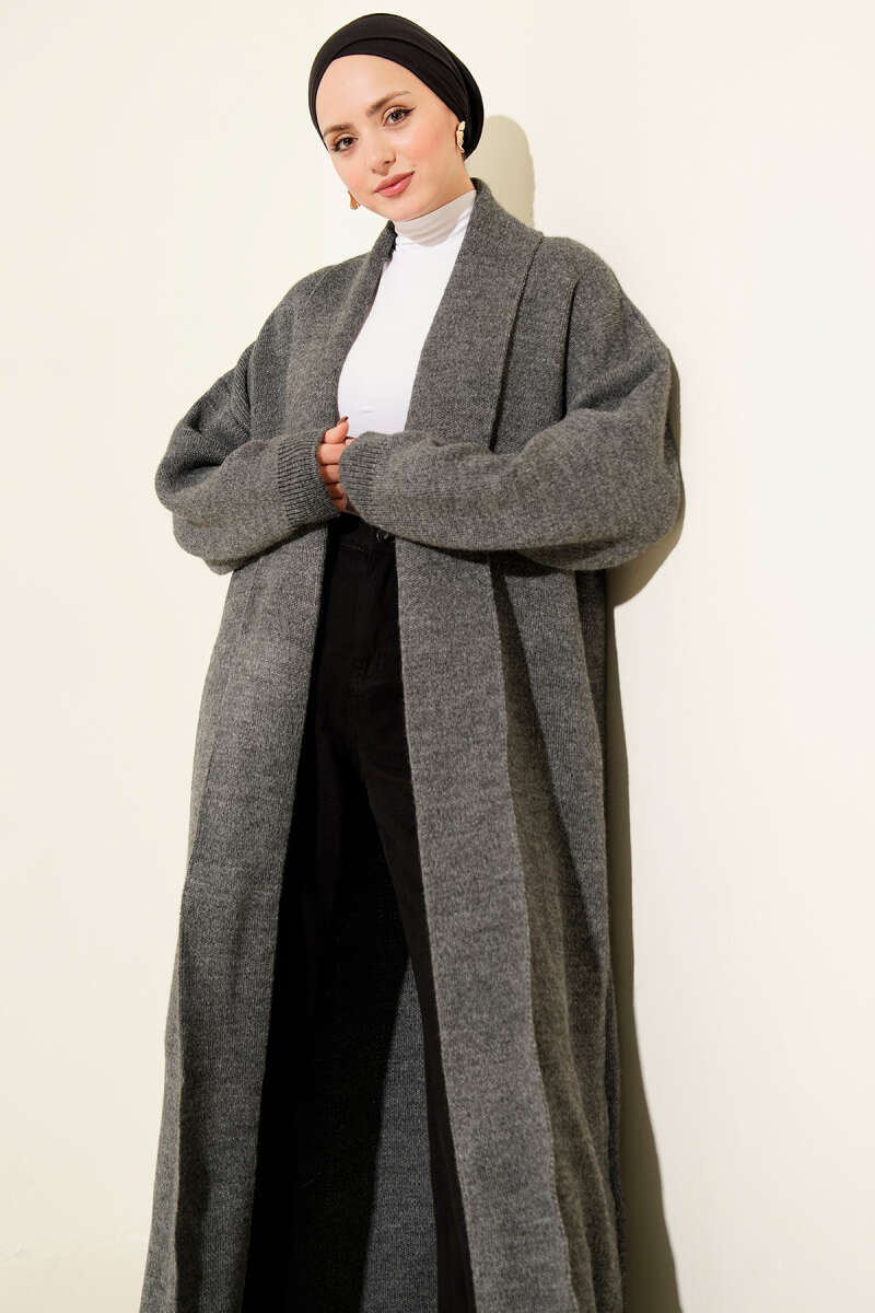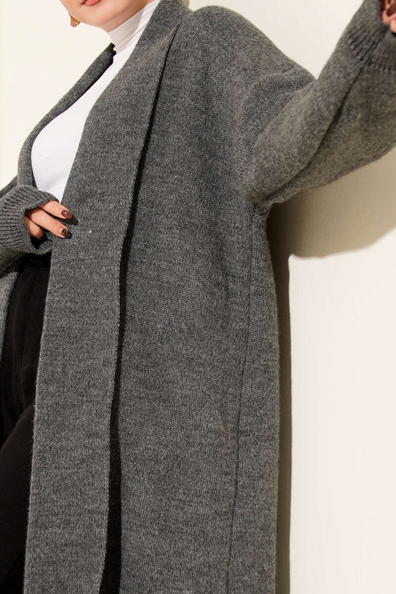 Çiçek Nakışlı Düğmeli Merserize Hırka Gri