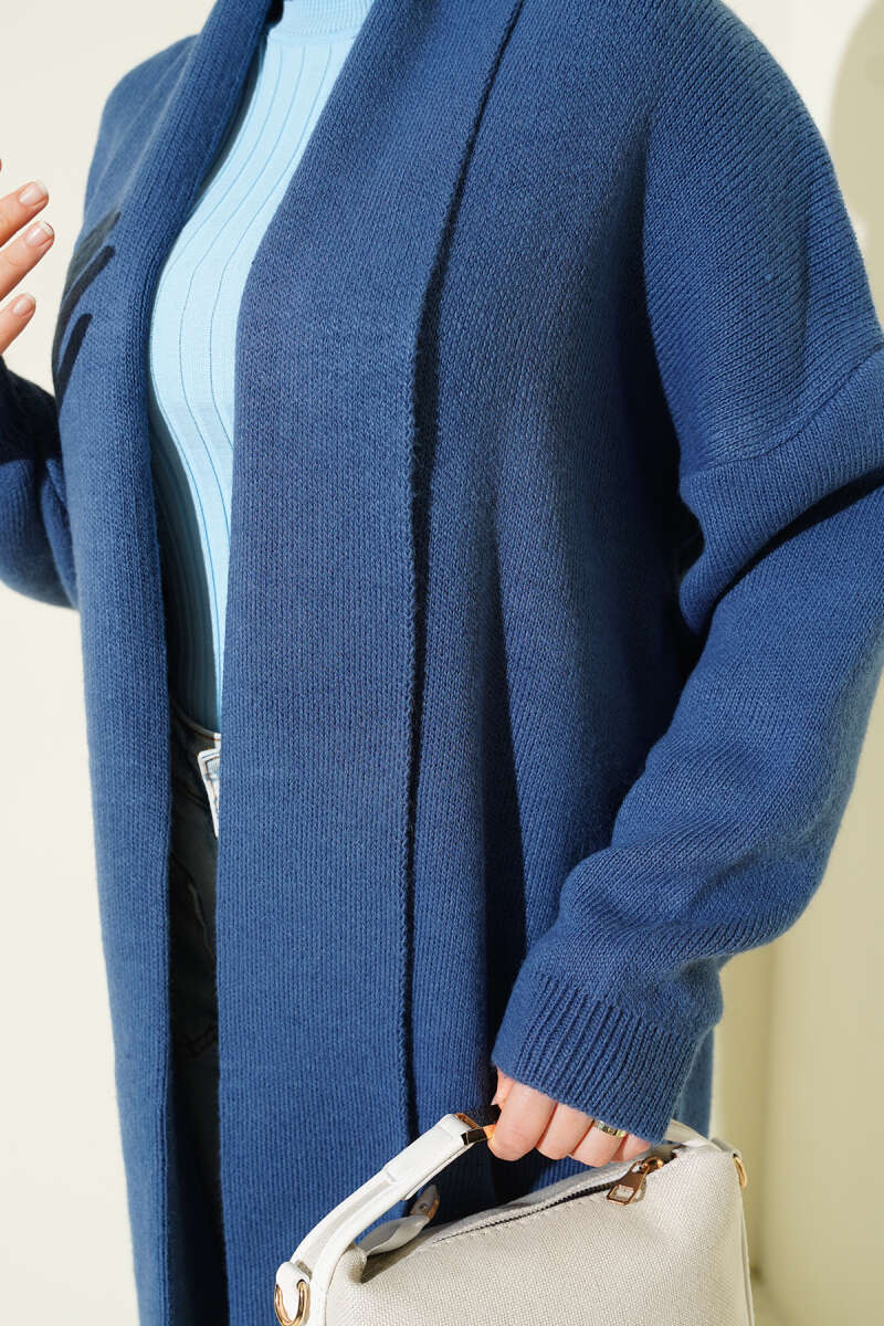 Sarmal Desen Detaylı Triko Hırka Lacivert