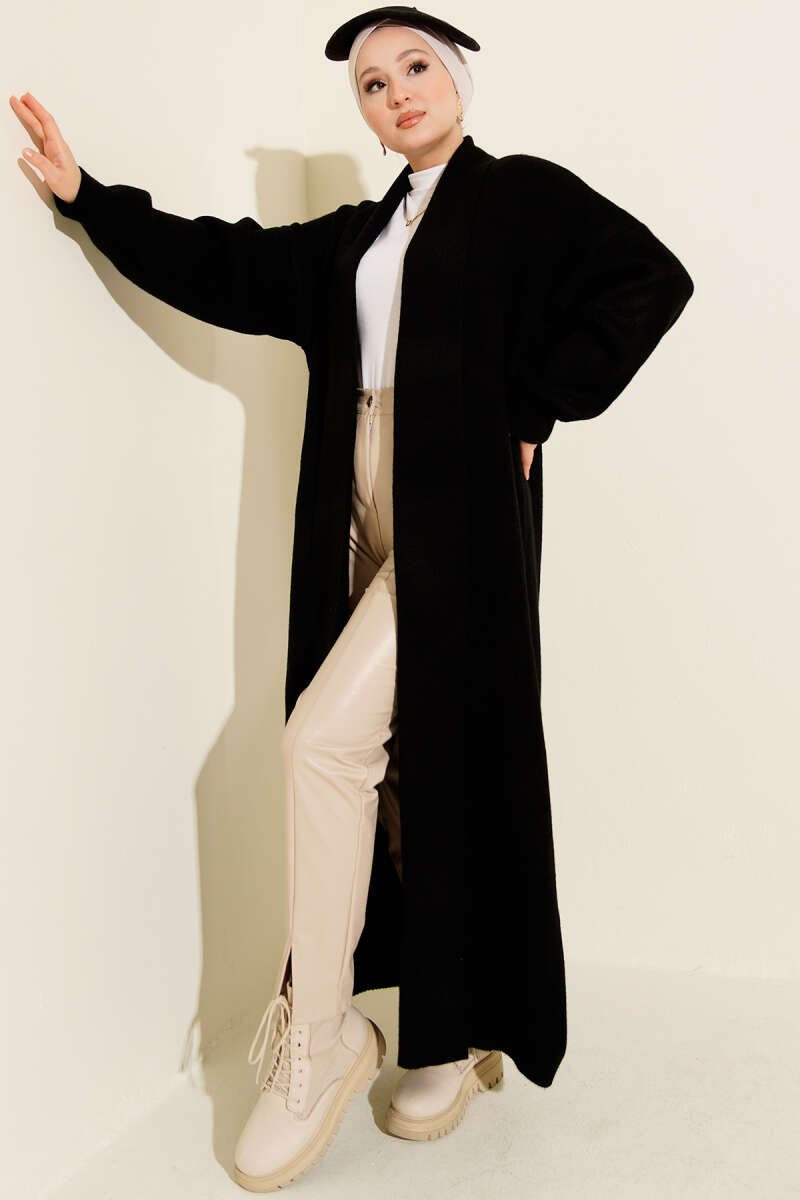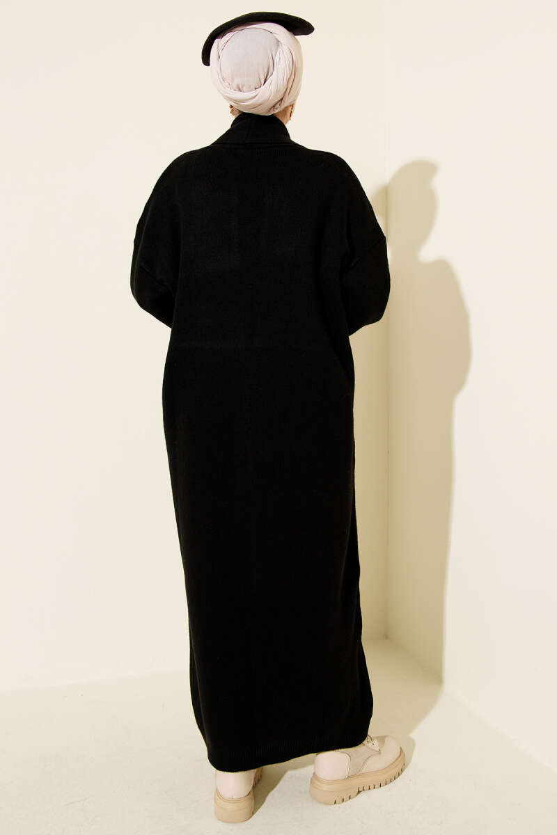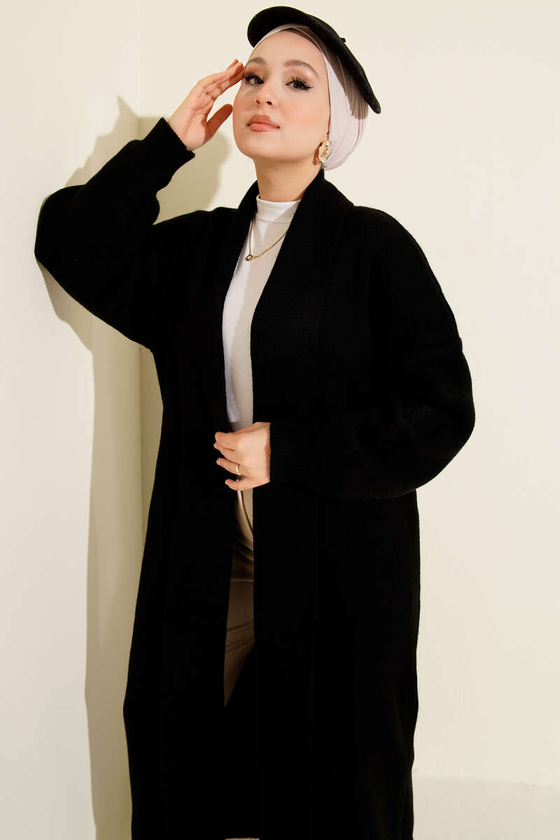 Şal Yaka Basic Uzun Triko Hırka Siyah