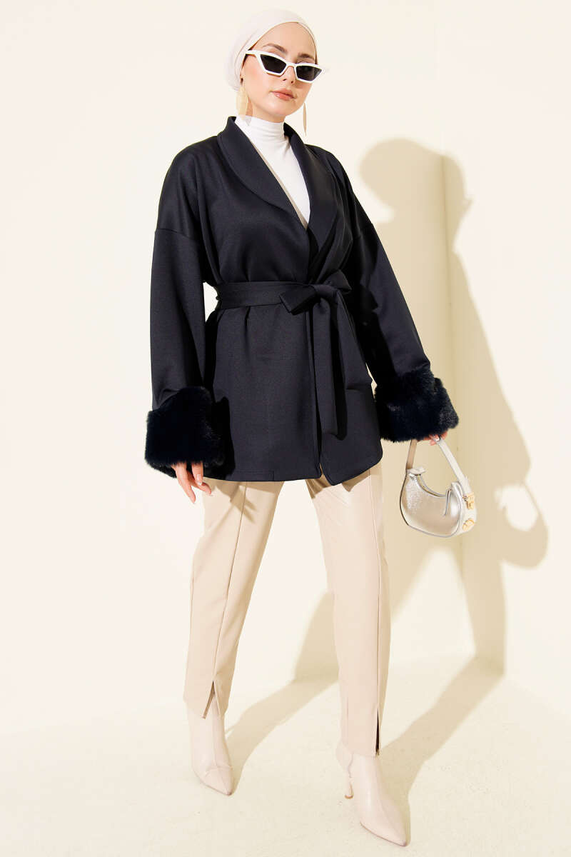 Selanik Örgülü Uzun Triko Hırka Siyah