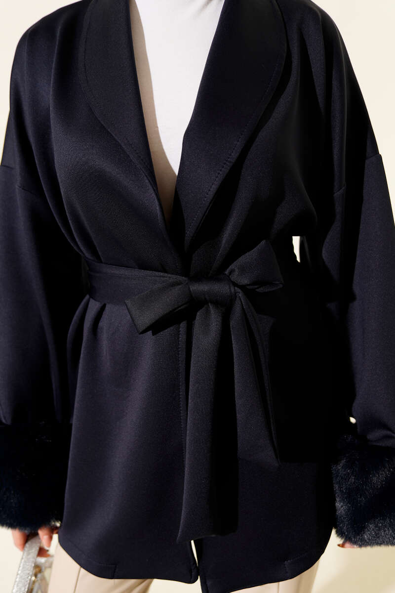 Kuşaklı Düğme Detaylı Kaşe Kaban Mor