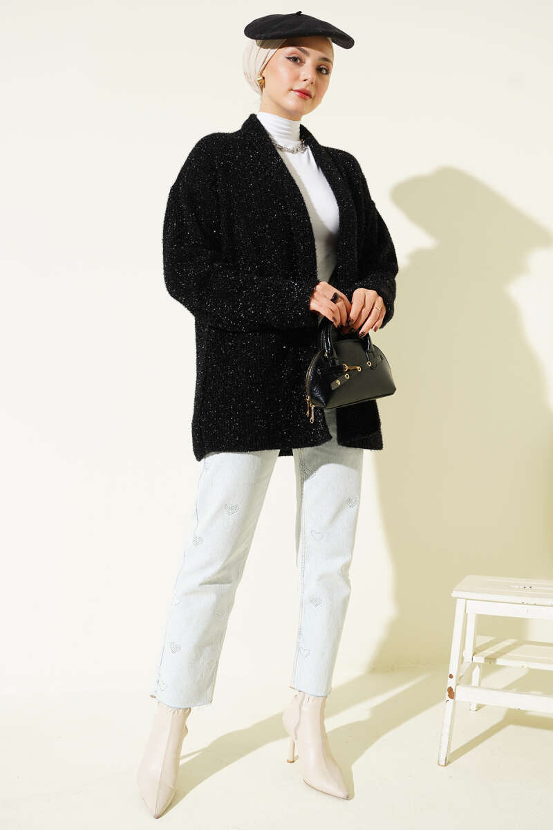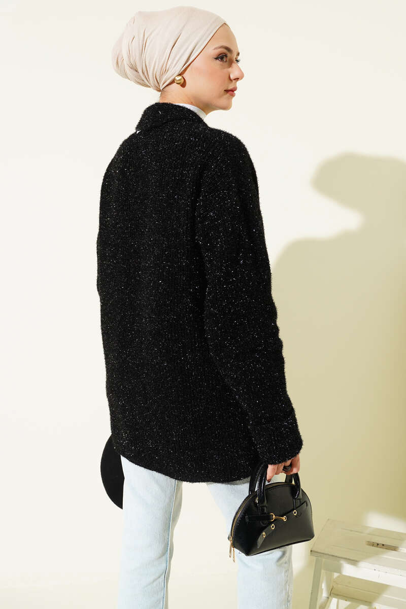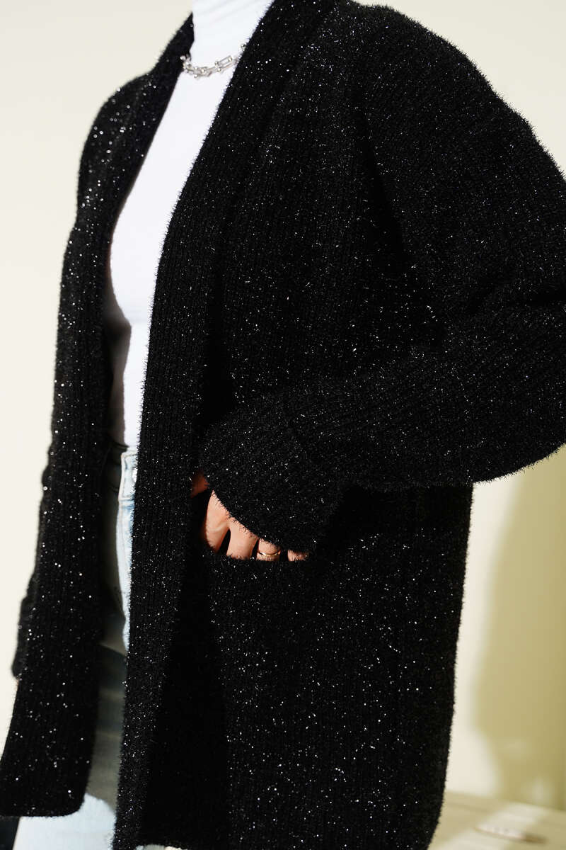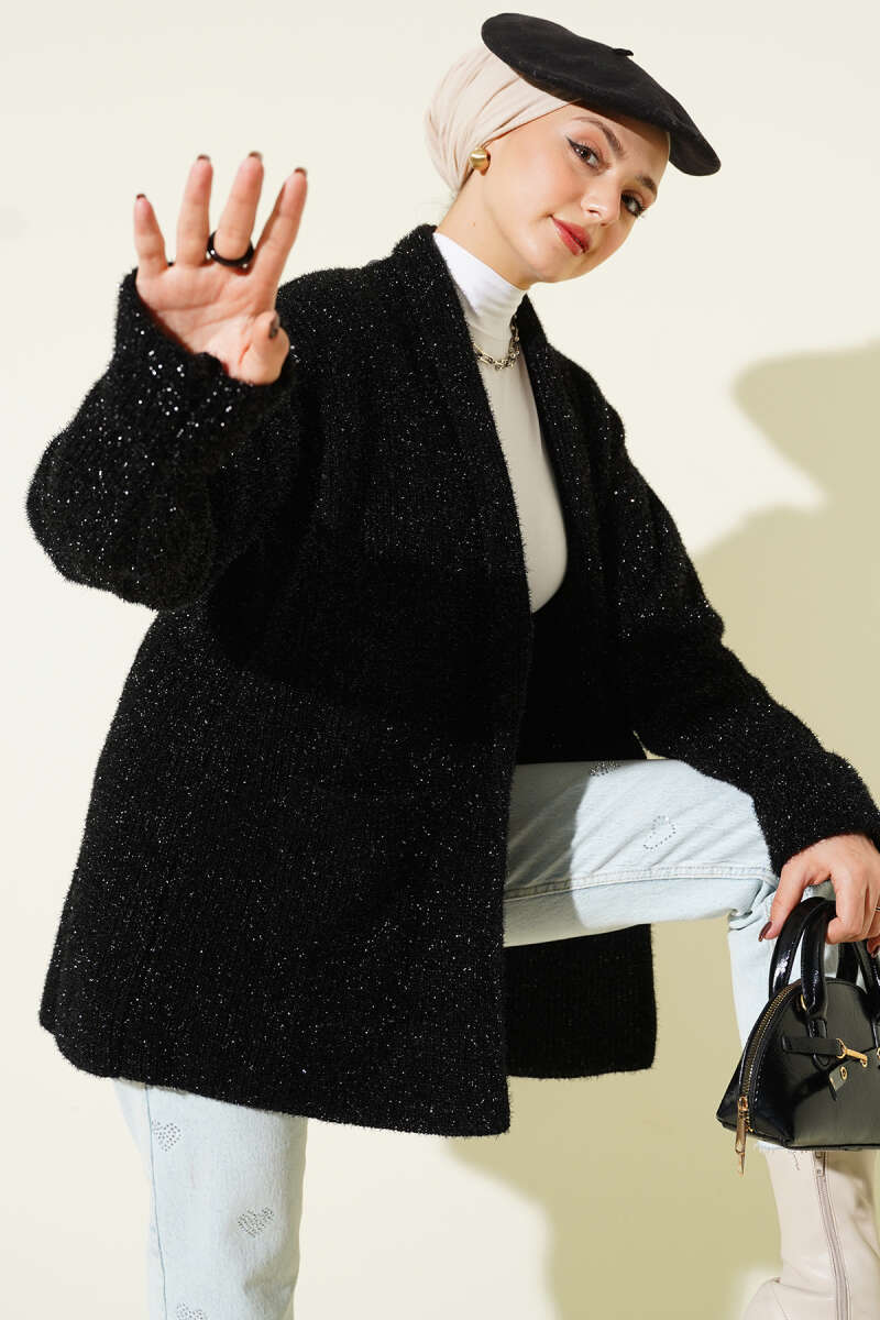 Kol Ucu Düğmeli Şal Yaka Triko Hırka Füme
