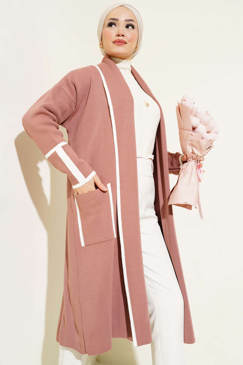 Düğmeli Uzun Merserize Hırka Mürdüm