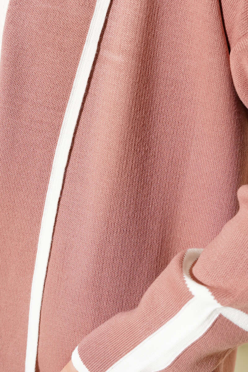 Zikzak Desenli Gold Düğmeli Triko Hırka Kahve
