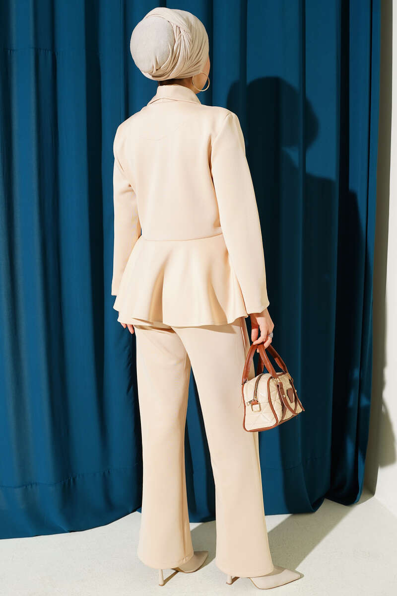 Bel Lastikli Düğme Detaylı İkili Takım Kahve