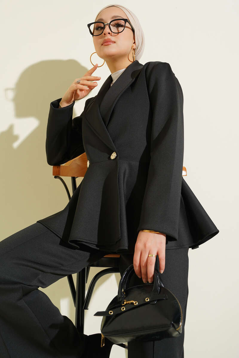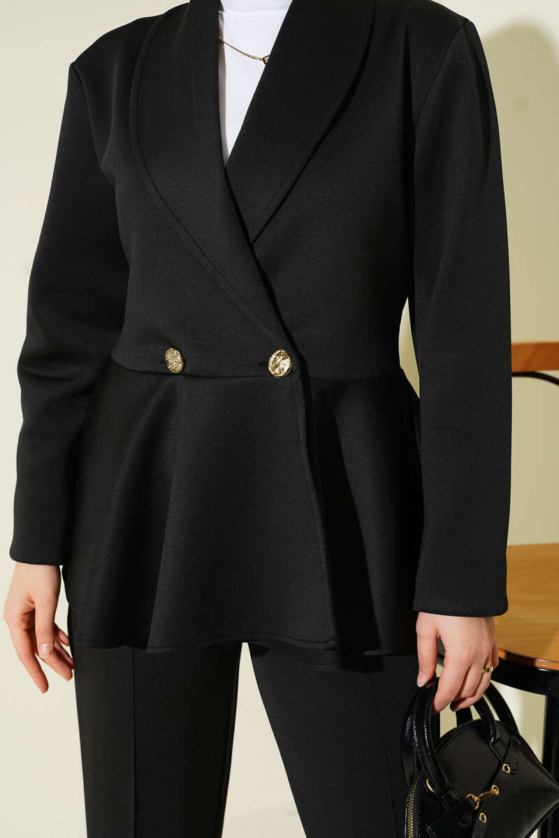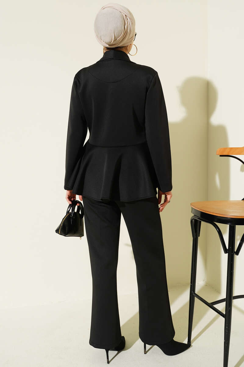 Bel Lastikli Düğme Detaylı İkili Takım Siyah