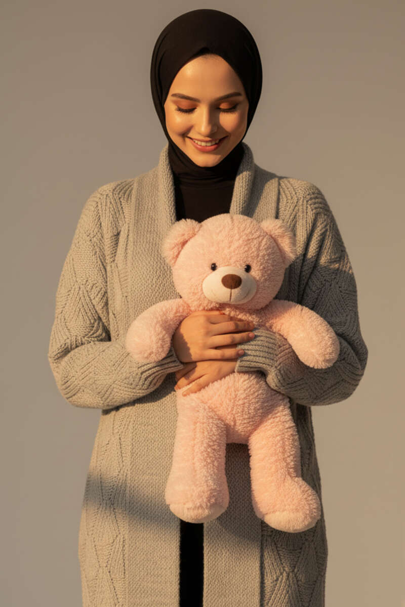 Şal Yaka Örgü Desenli Uzun Triko Hırka Füme
