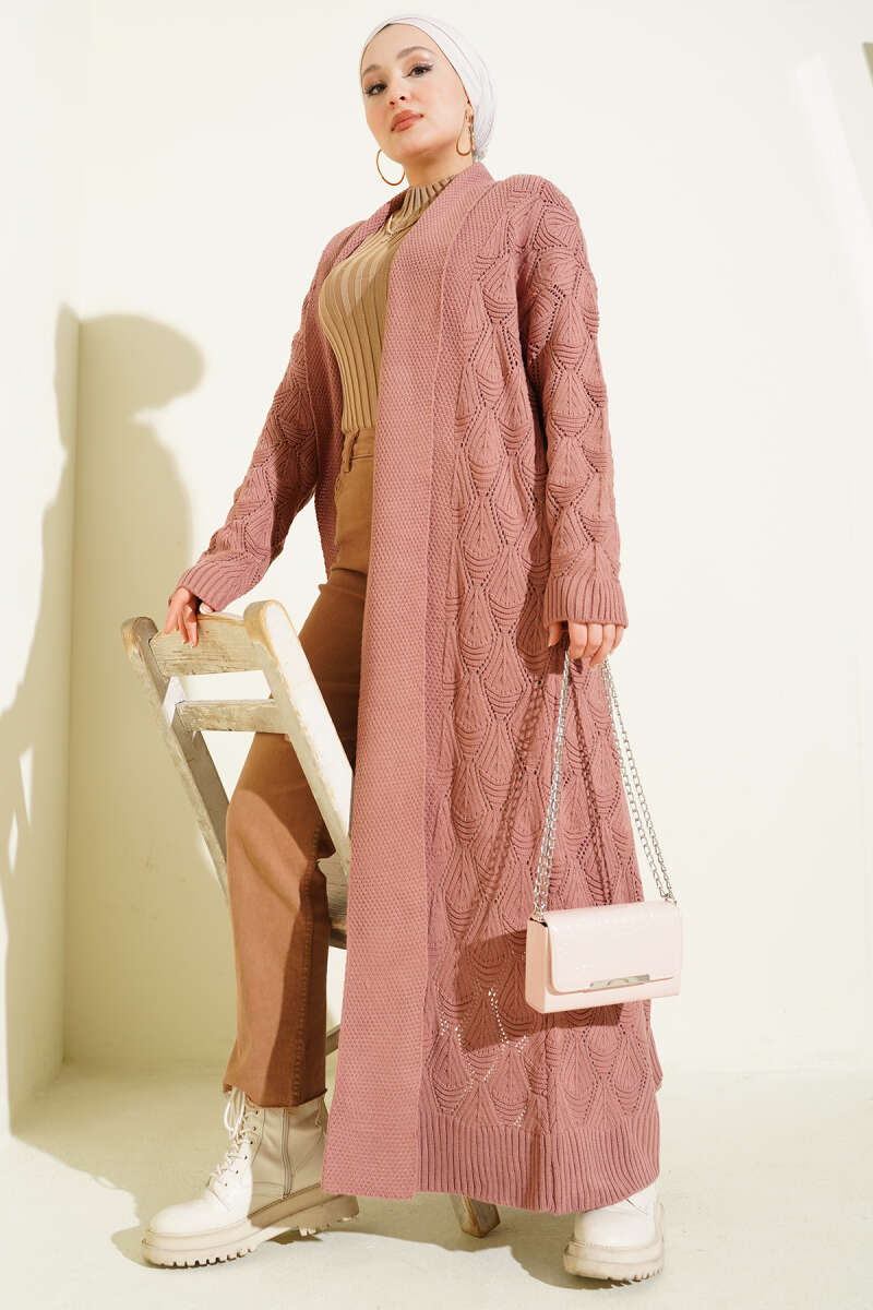Örgü Desen Detaylı Triko Hırka Acı Kahve