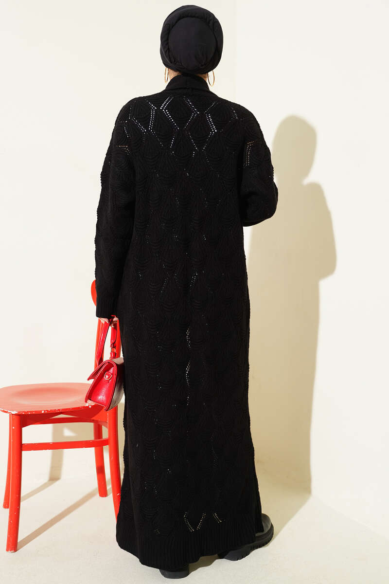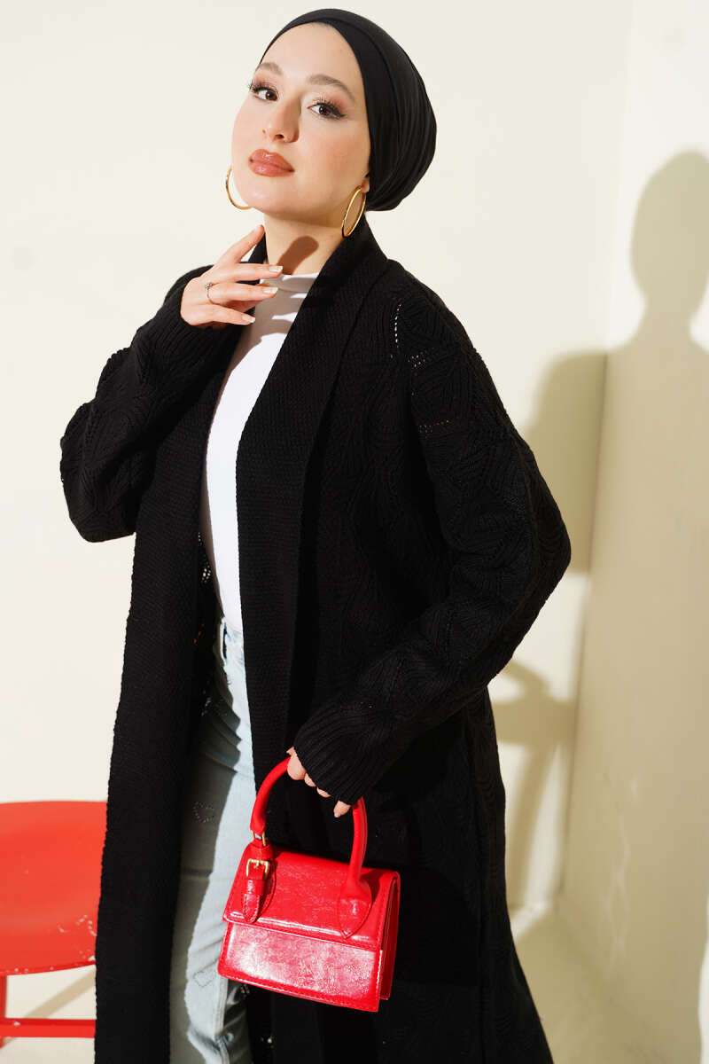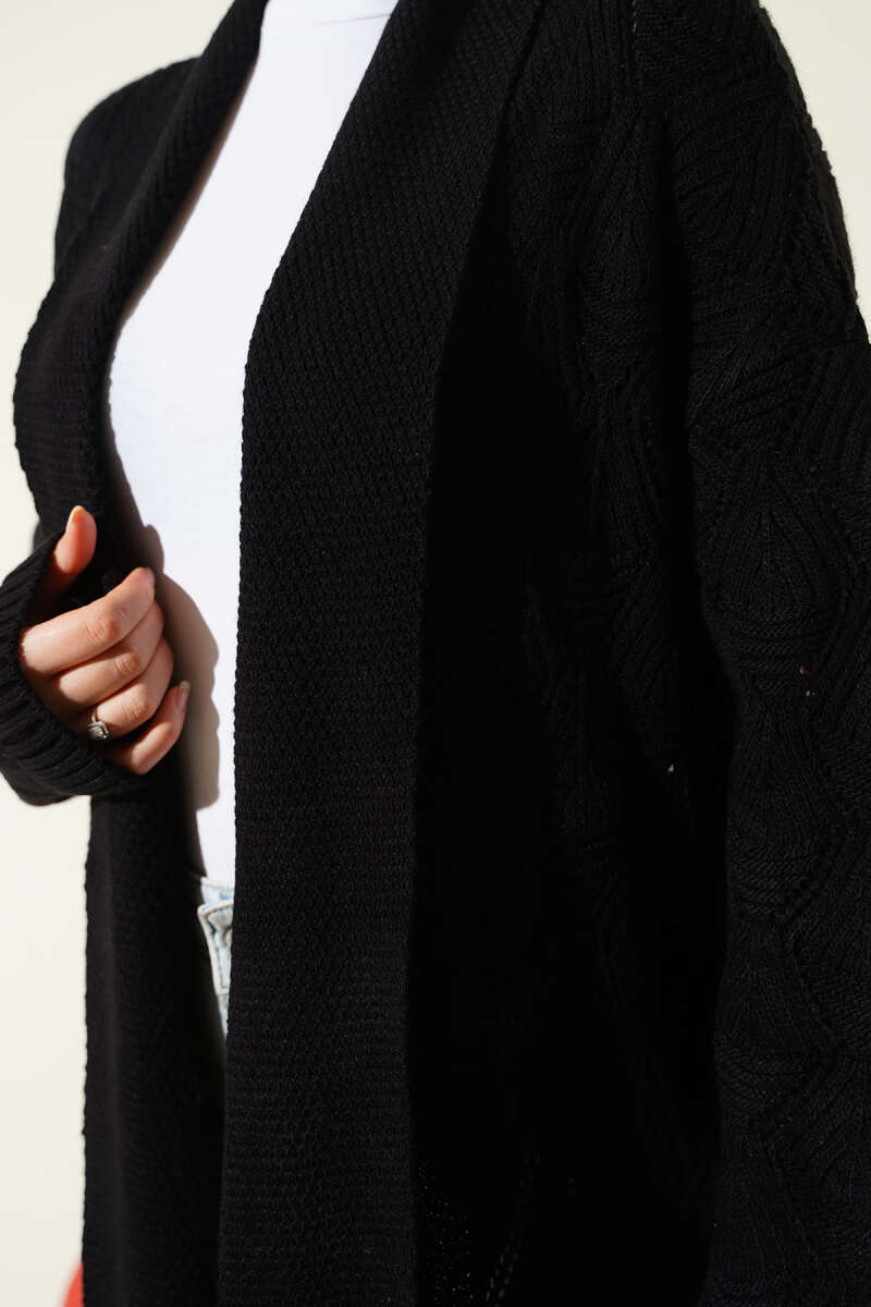 Örgü Desen Detaylı Triko Hırka Siyah