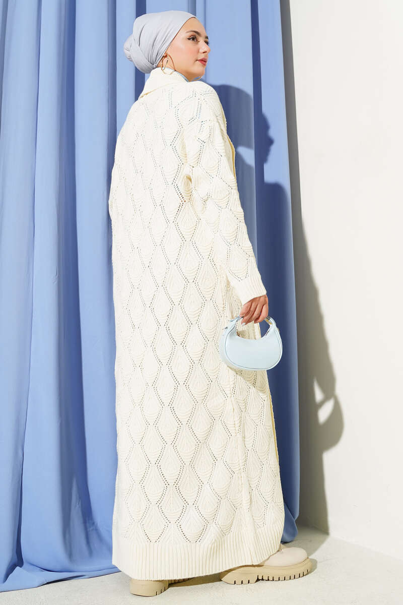 Boydan Düğmeli Sepet Örgü Uzun Hırka Lacivert