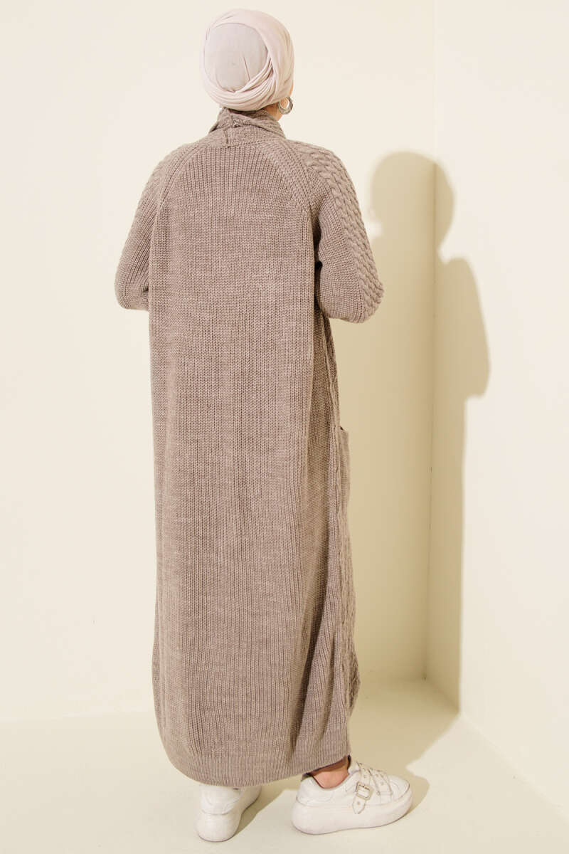 Kol Ucu Düğmeli Şal Yaka Triko Hırka Kahve