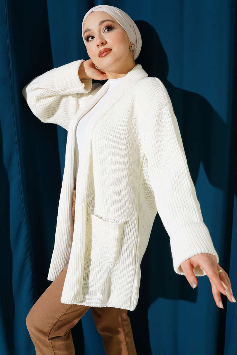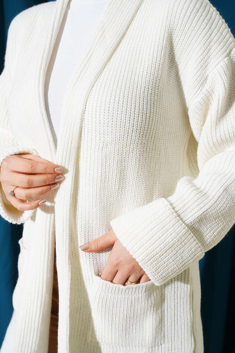 Şal Yaka Örgü Desenli Uzun Triko Hırka Gri