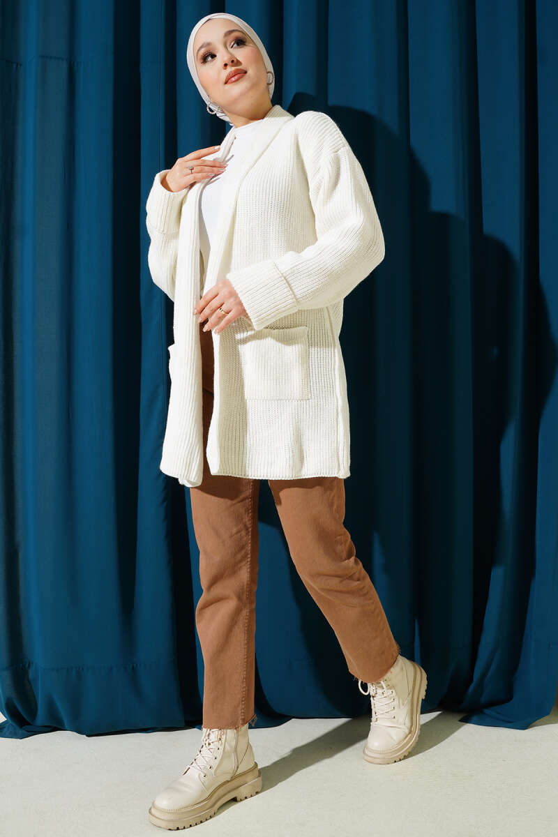 Şal Yaka Örgü Desenli Uzun Triko Hırka Kiremit