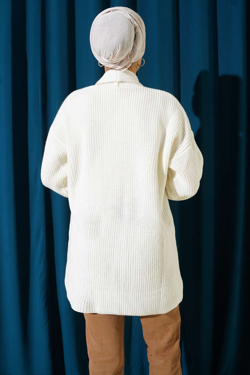 Şal Yaka Örgü Desenli Uzun Triko Hırka Füme
