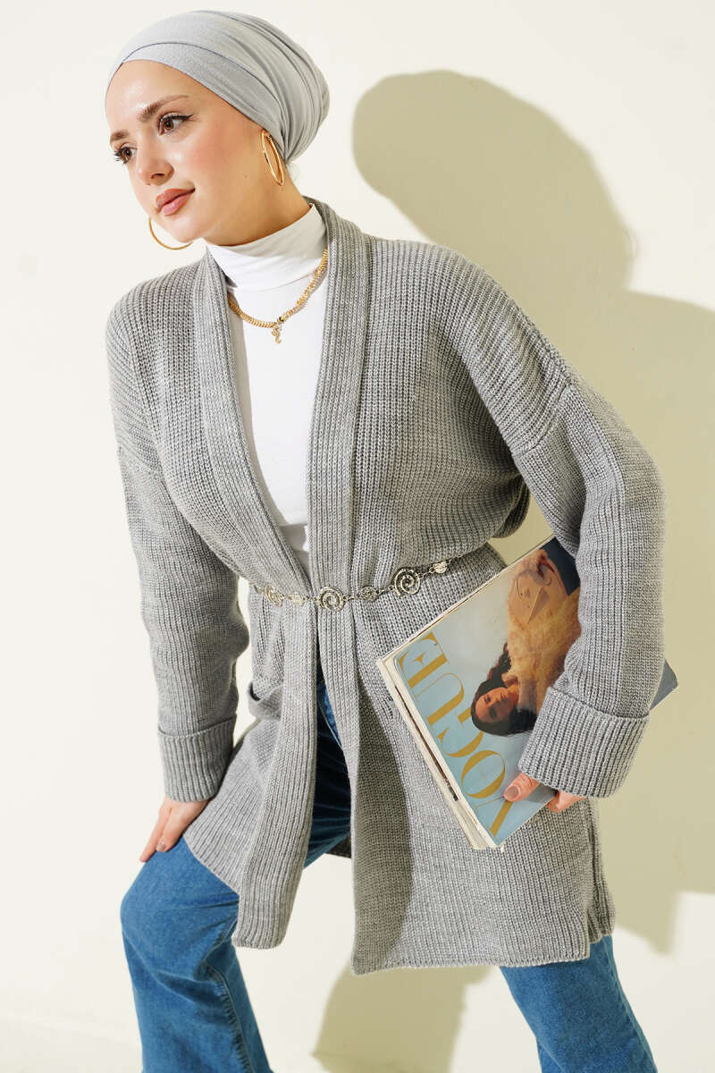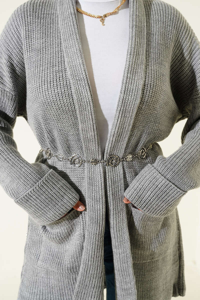 Şal Yaka Pirinç Örgü Triko Hırka Petrol