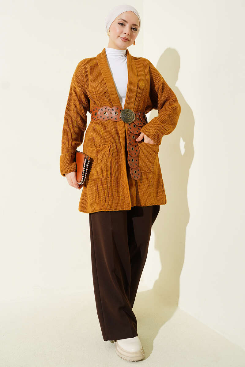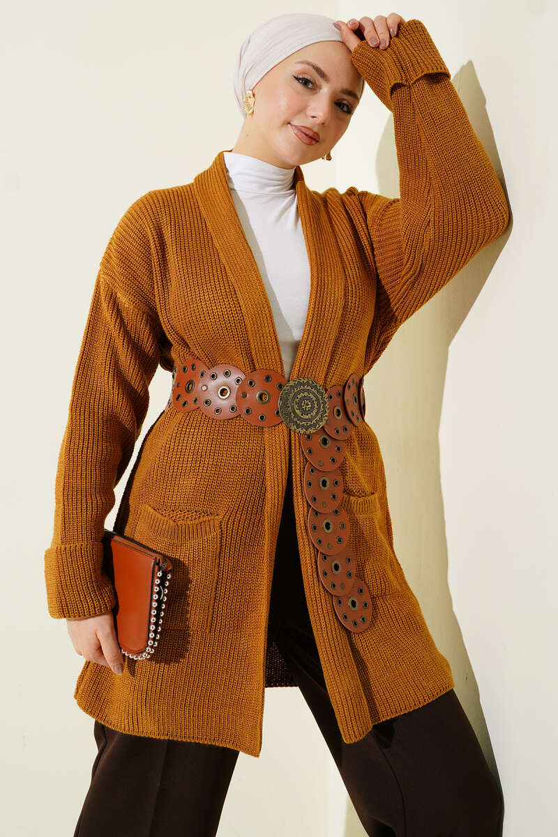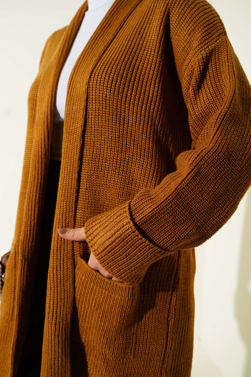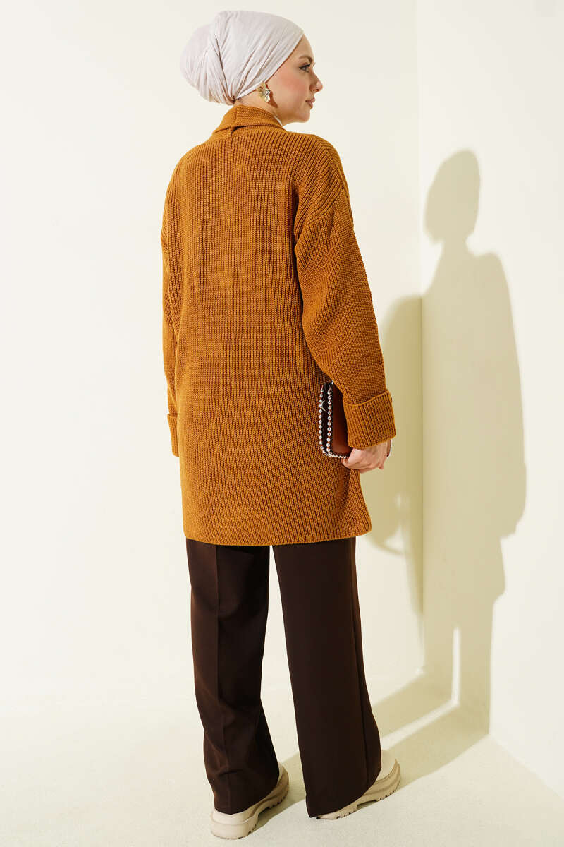 Önü Düğmeli Ayrobin Taba Uzun Hırka