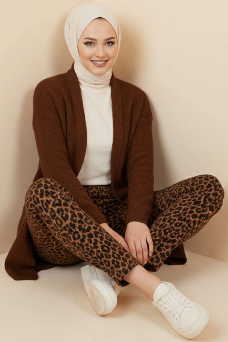 Selanik Örgülü Uzun Triko Hırka Vizon