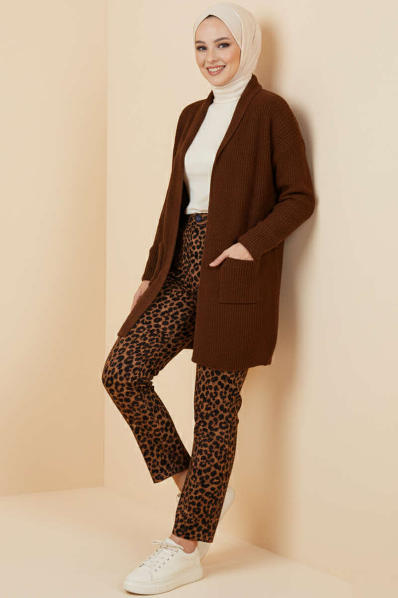 Selanik Örgülü Uzun Triko Hırka Petrol