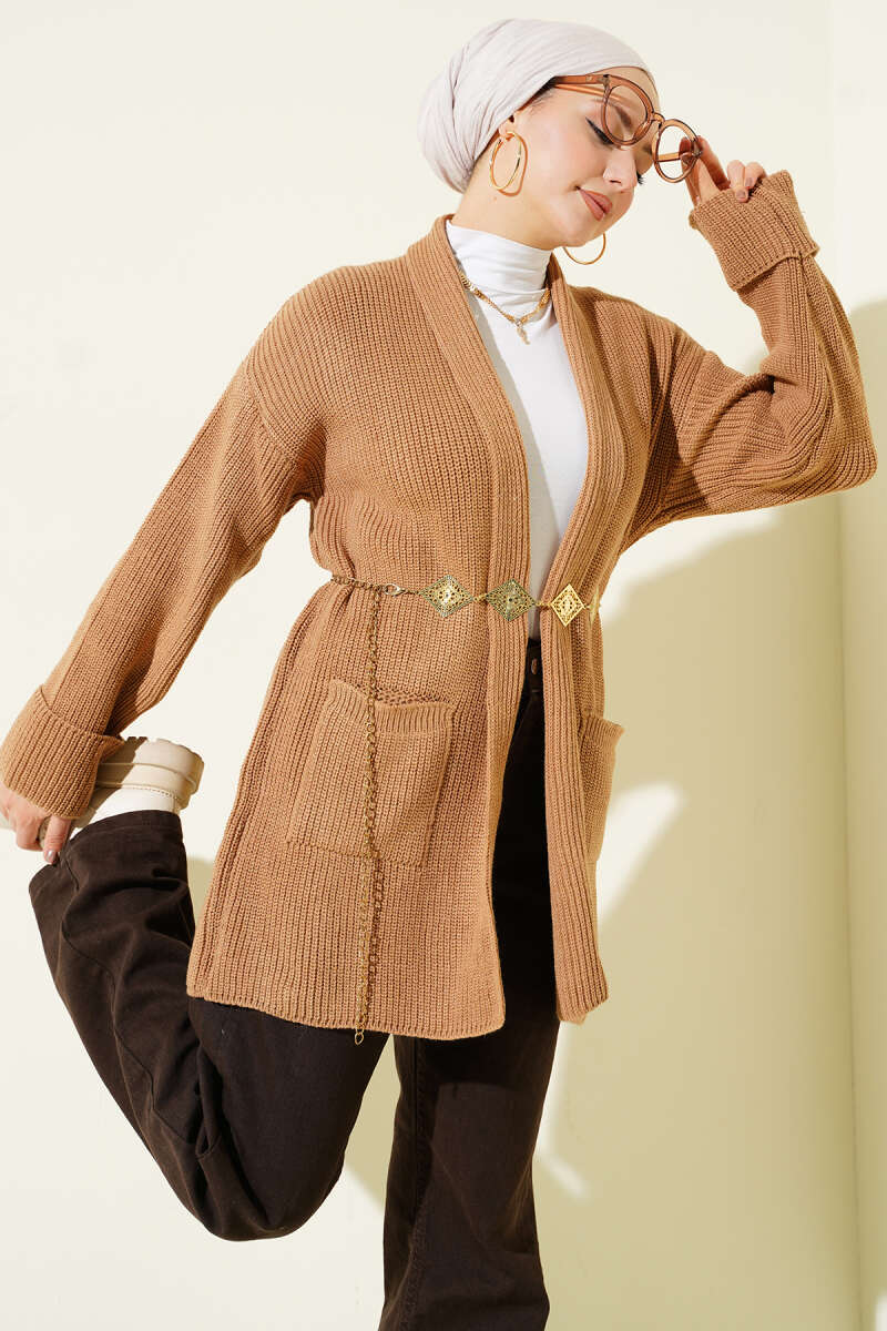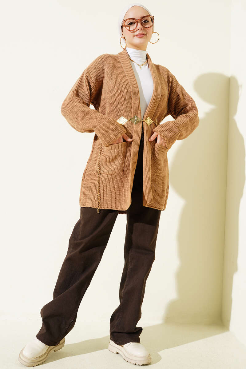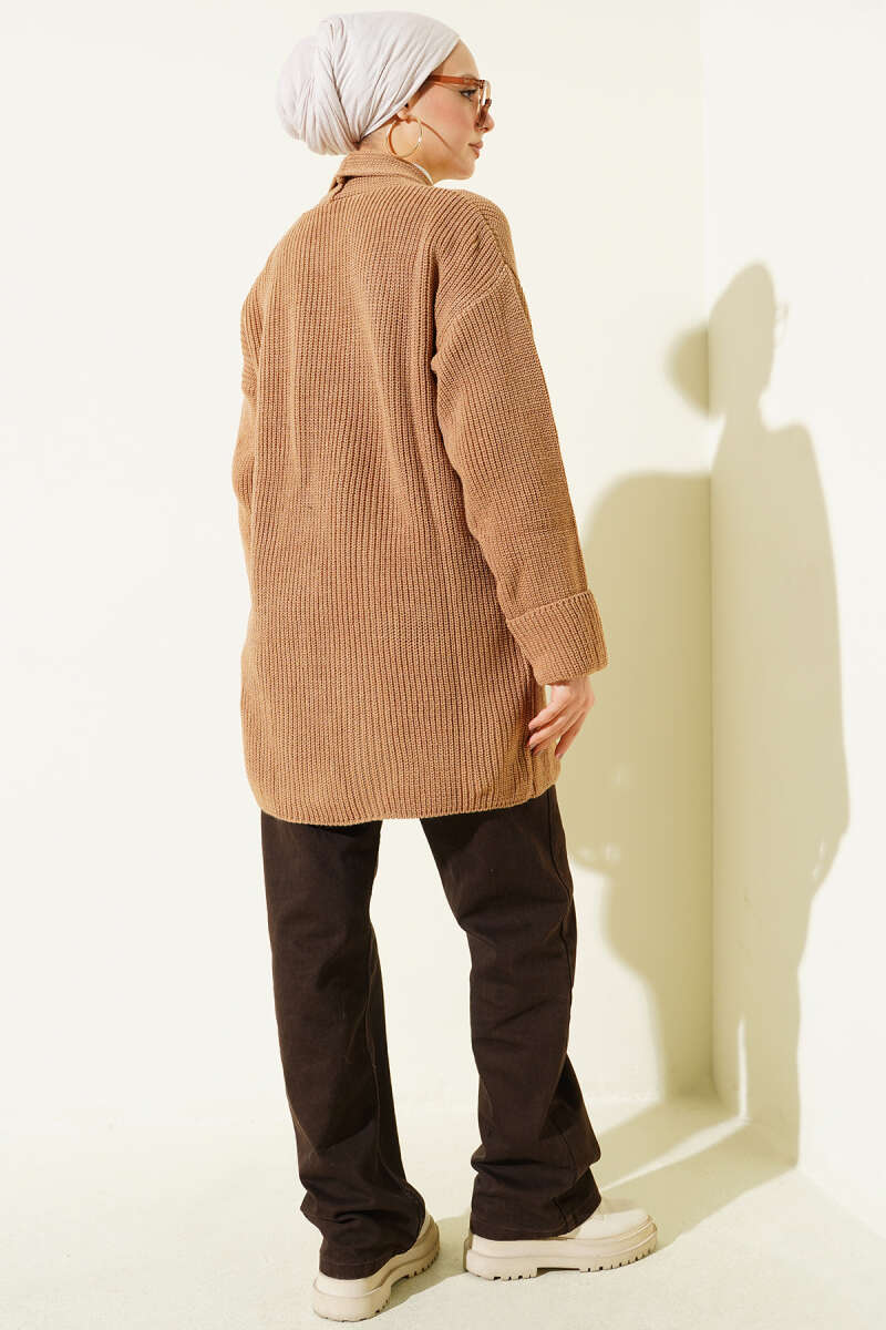 Düğmeli Ajurlu Kısa Triko Hırka Vizon