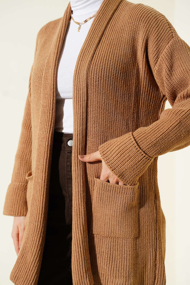Düğmeli Ajurlu Kısa Triko Hırka Kahve