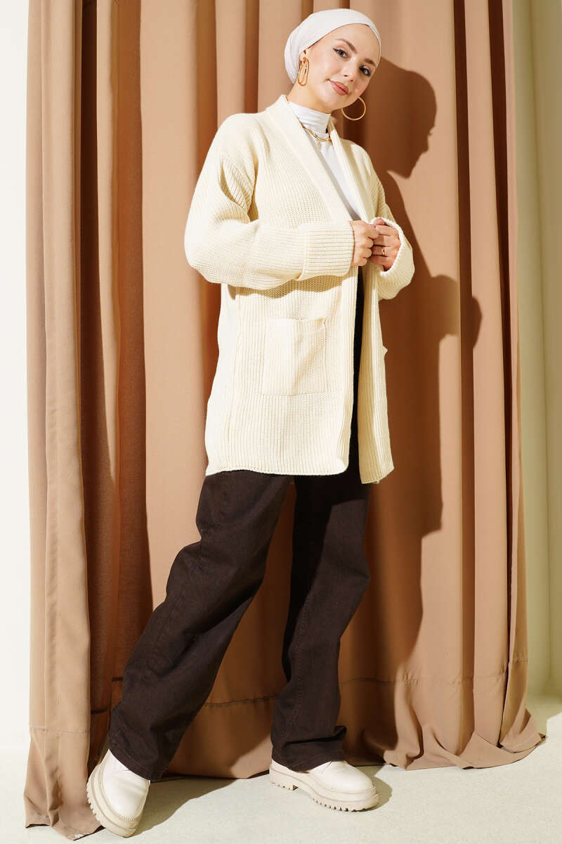 Yarım Boğazlı Balıkçı Triko Kazak Ekru