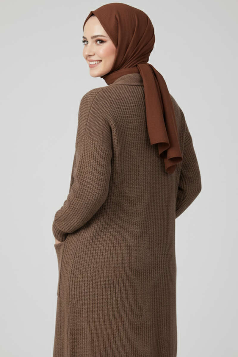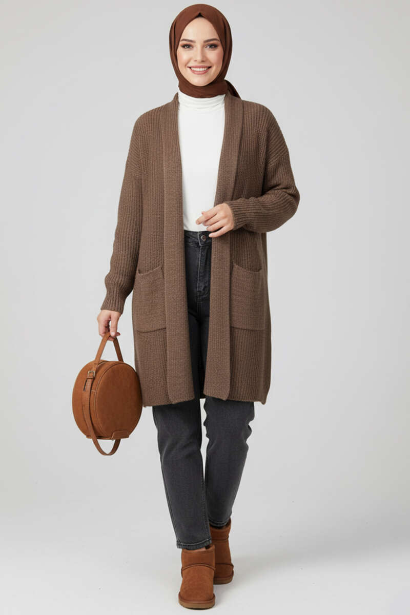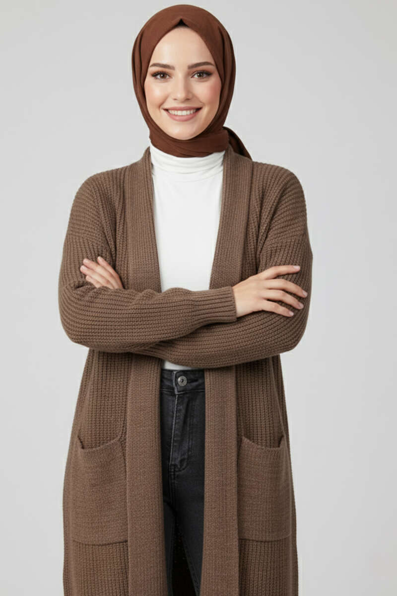 Cepli Uzun Triko Hırka Taş